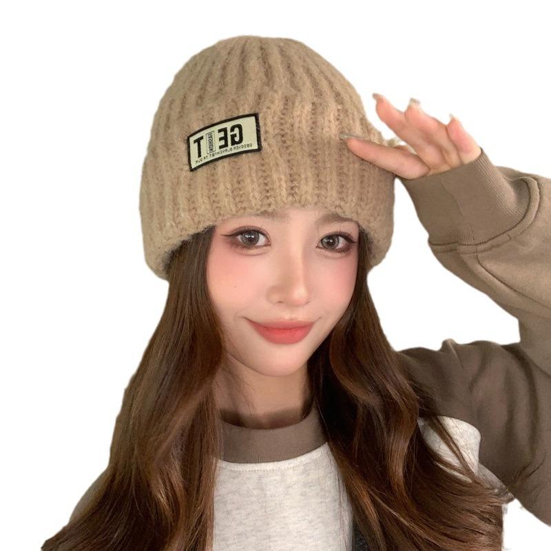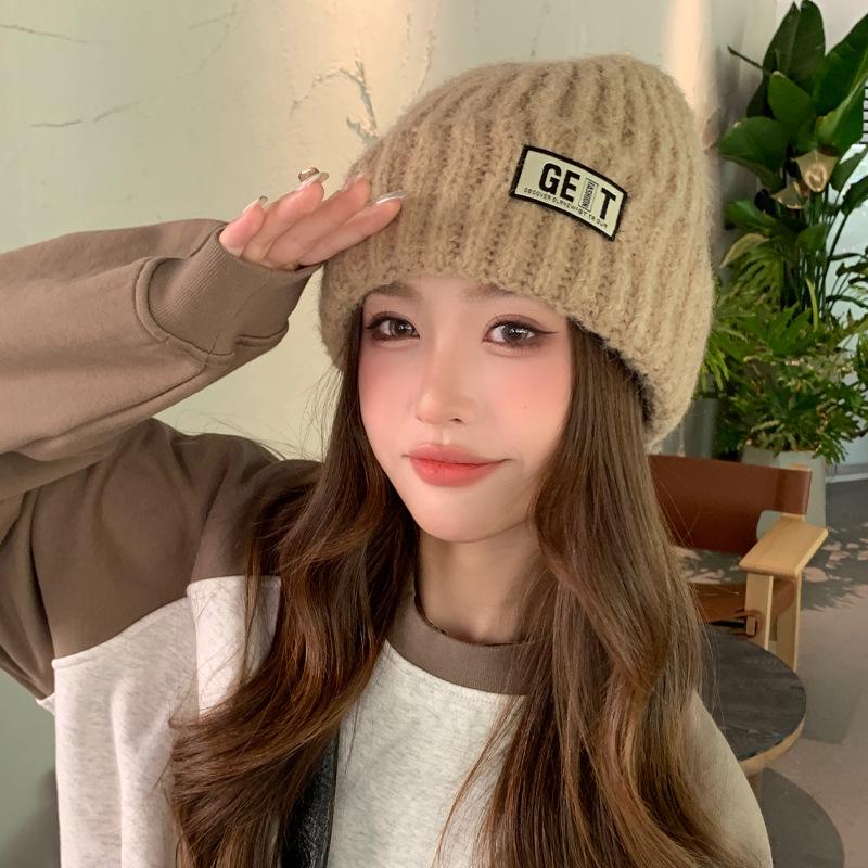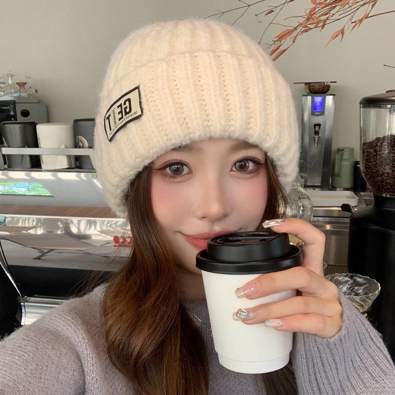 Новая шапка женская шерстяная шапка с маркировкой алфавита зимняя термошапка студенческая универсальная трикотажная шапка с защитой ушей