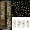 12Grid/box Золотые Серебряные Полукруглые Бусины Икры Подвески для ногтей 1/2/3/5 мм Плоские Круглые Стальные Бусины для ногтей Микро Шарики Маникюрные Бусины
