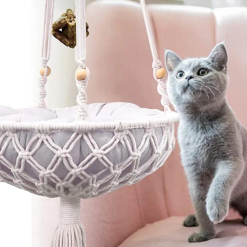 Домашний гамак для кошек, качели для кошек, гобеленовая кровать, веревка для макраме, насест для кошек, настенная корзина, спальный коврик, домашний декор, кровать для кошек