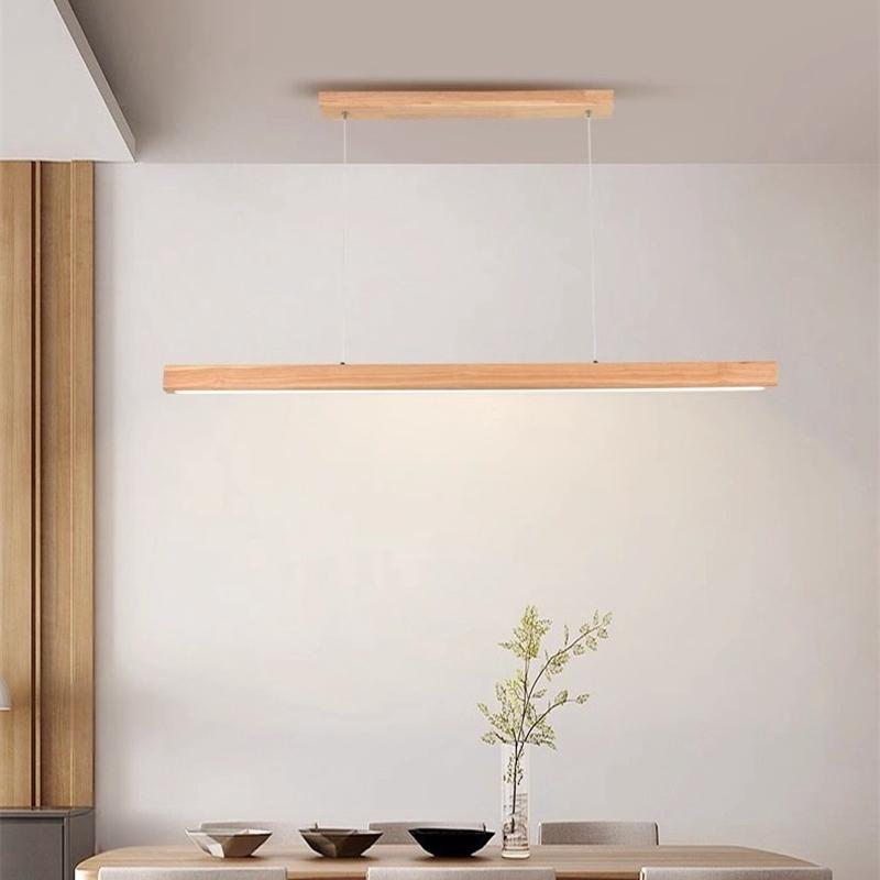 Светодиодный подвесной светильник из скандинавского дерева, простая потолочная люстра с регулируемой яркостью, для столовой, кухни, длиннополосный подвесной светильник
