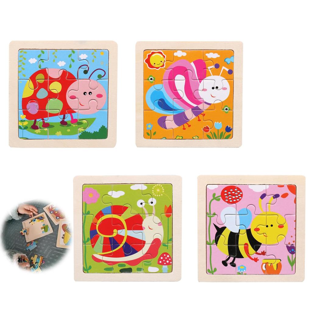 Деревянный пазл для детей, пазл в форме, пазл для детей 1 года, пазл для детей 3 лет, набор из 4 машин, животных, насекомых, плоских развивающих игрушек для распознавания цветов и форм