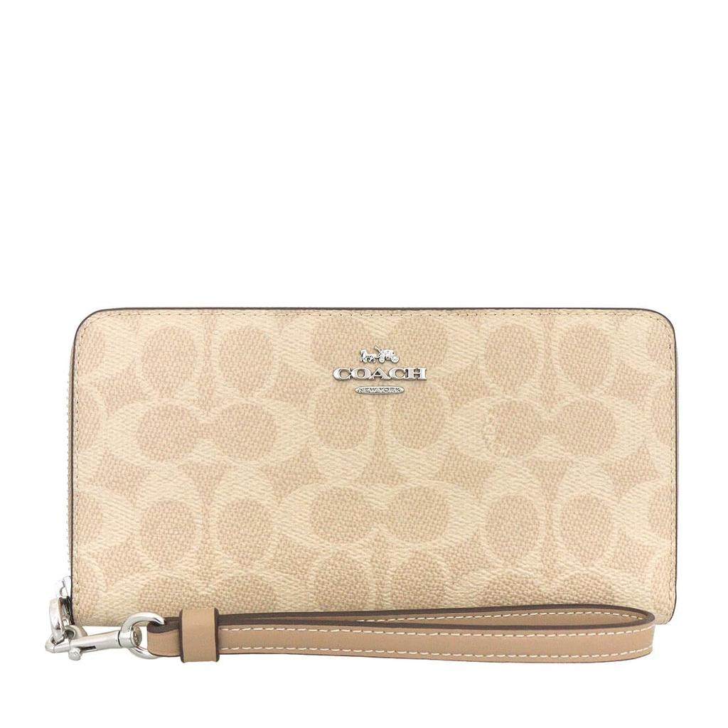 Coach Кошелек FCW778 CW778 Sand x Taupe Signature из кожи с покрытием, длинный кошелек на молнии [Coach] (Длинный кошелек) (с ремешком) Для женщин [Товар на выходе]