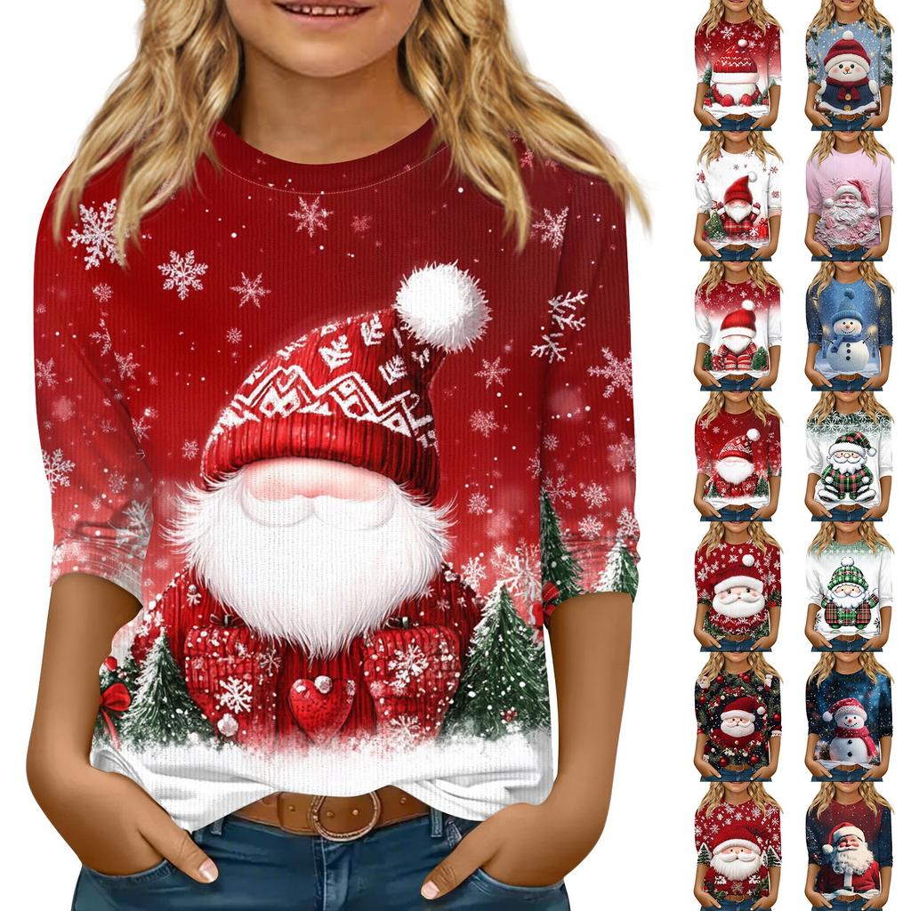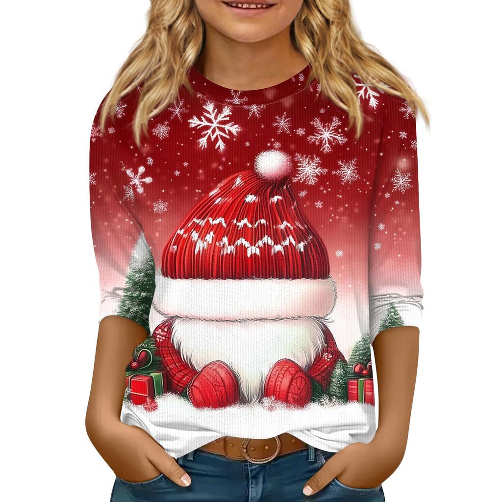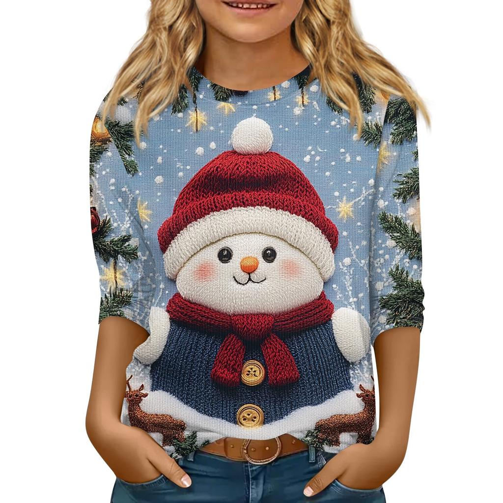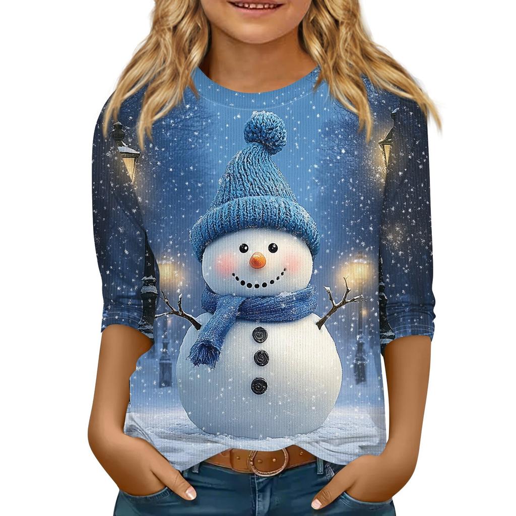 Детская футболка с рукавом 3/4, повседневная футболка с принтом, круглый вырез, блузка-пуловер