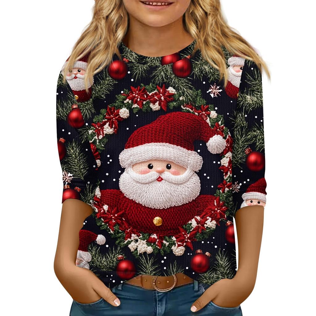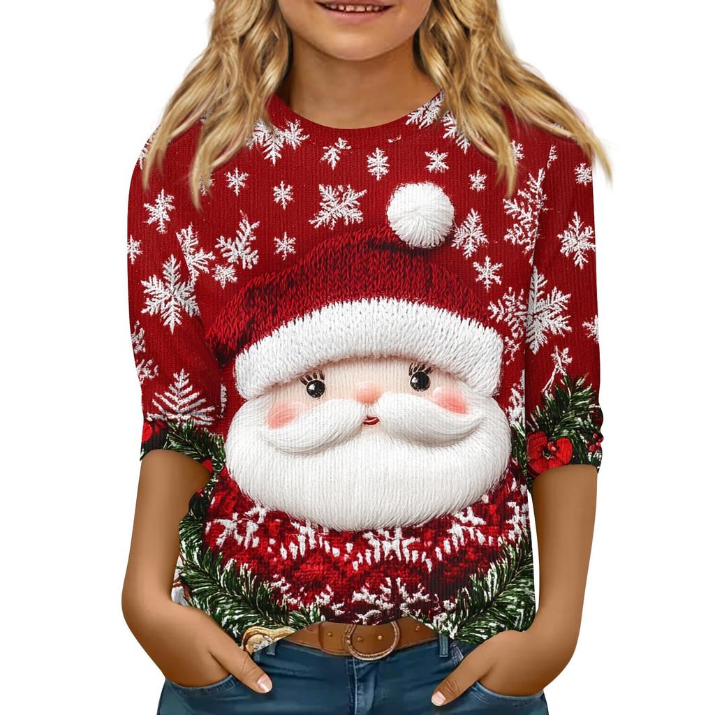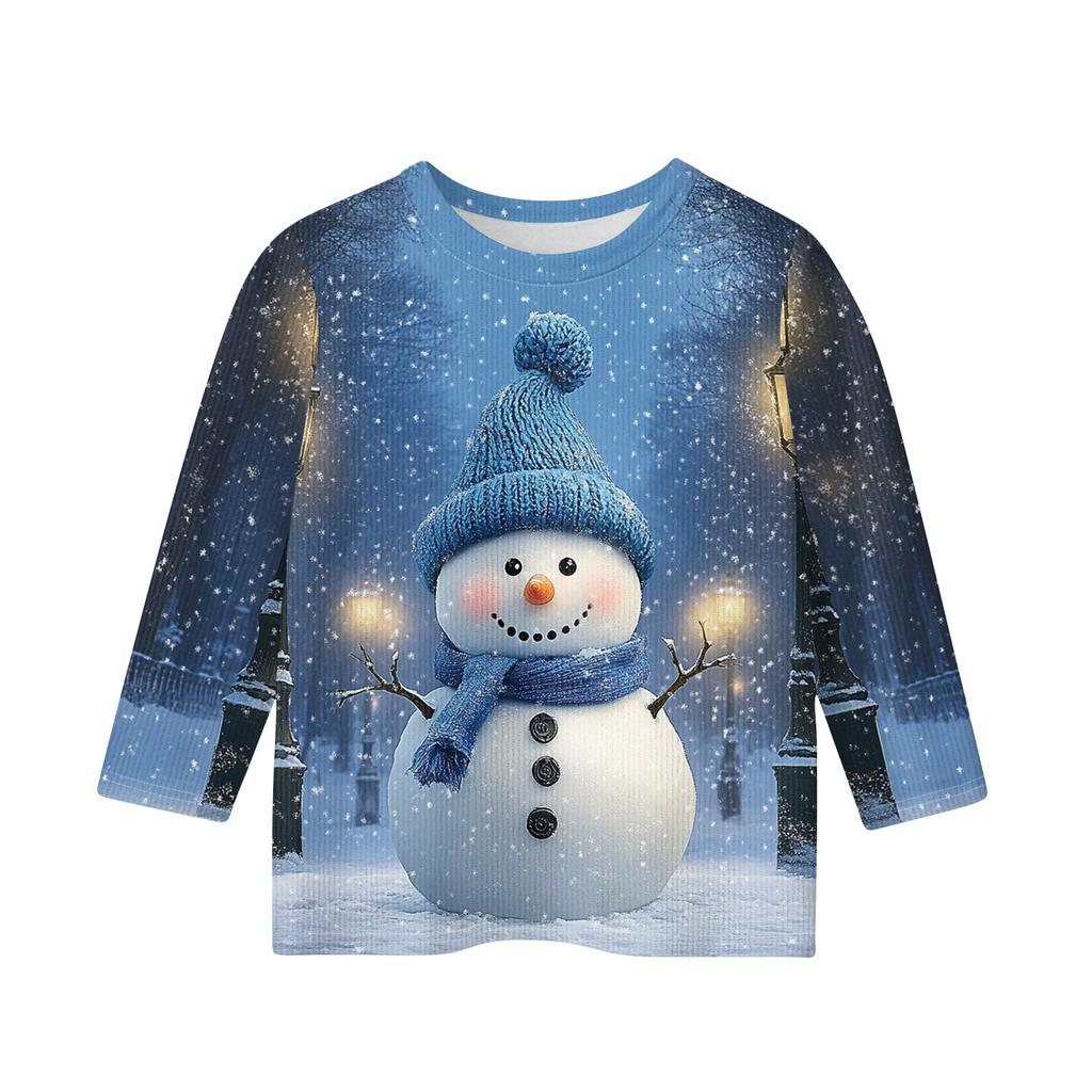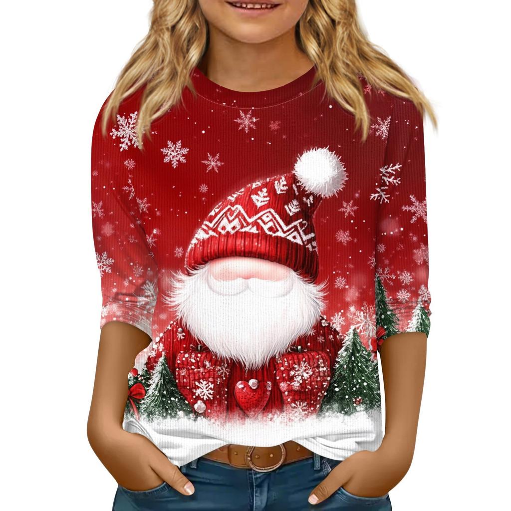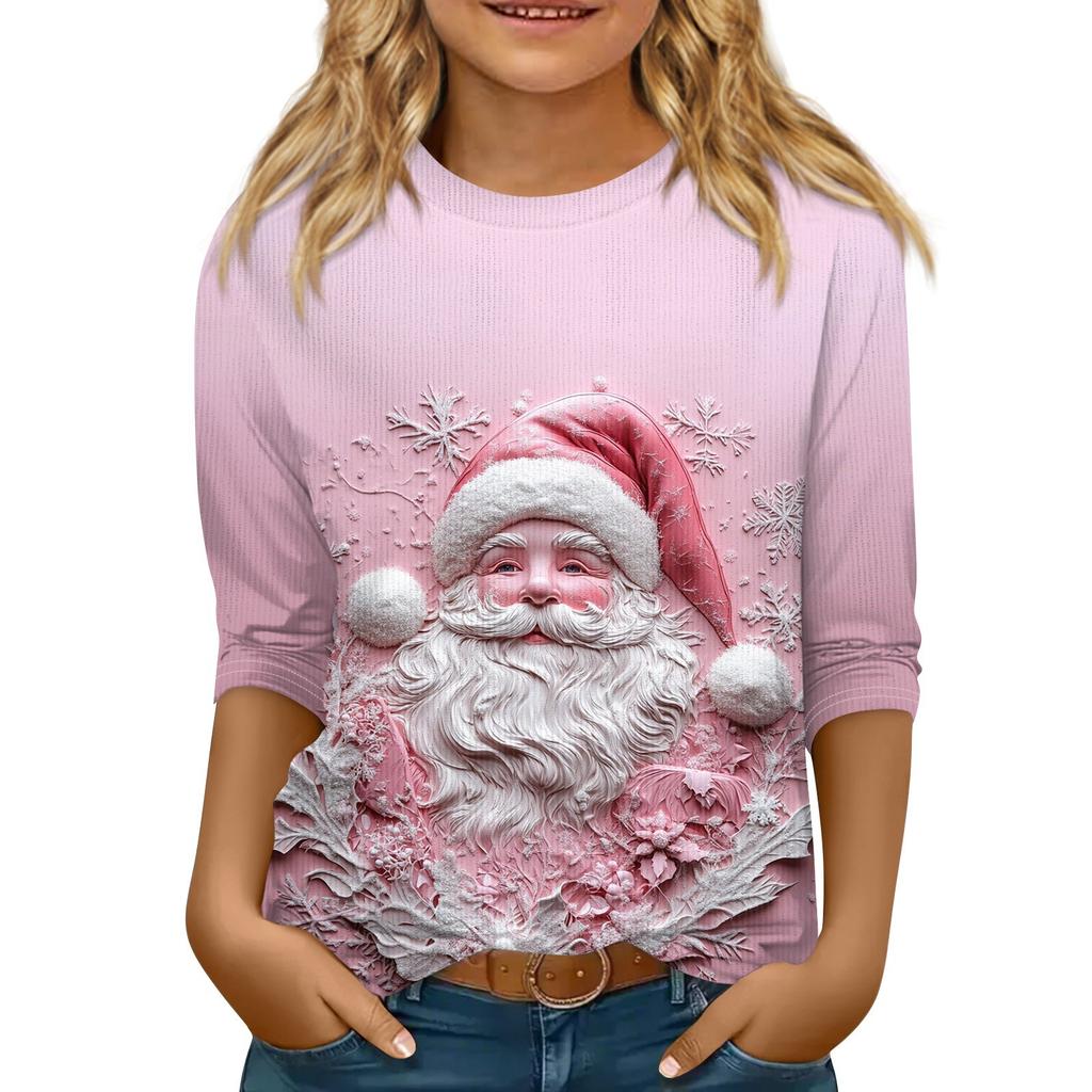 Детская футболка с рукавом 3/4, повседневная футболка с принтом, круглый вырез, блузка-пуловер