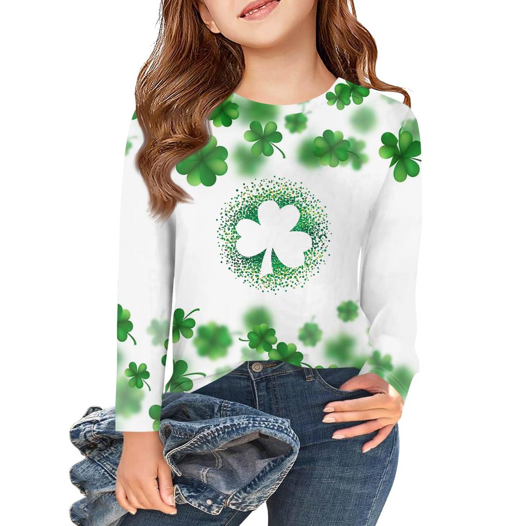Футболки с длинным рукавом для девочек, детские осенние топы с круглым вырезом и принтом, базовые футболки для детей 5–14 лет