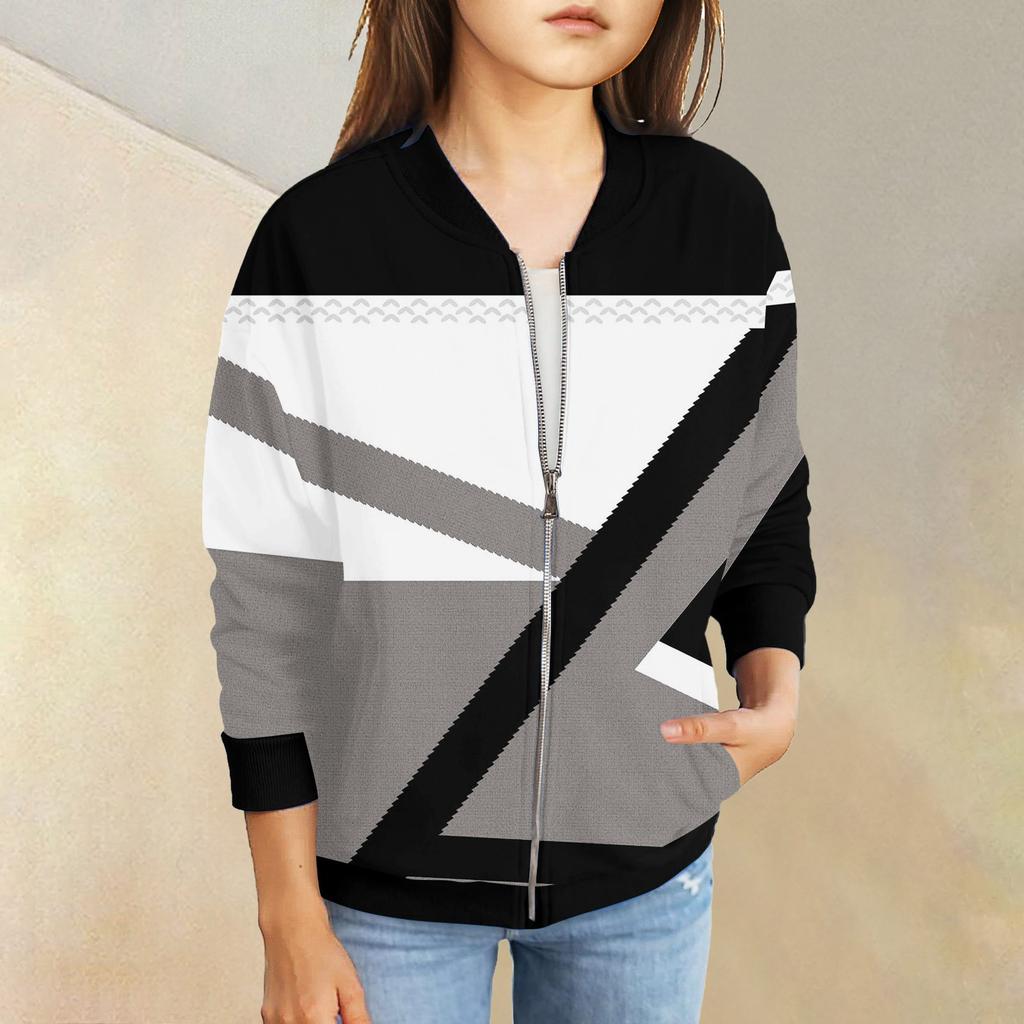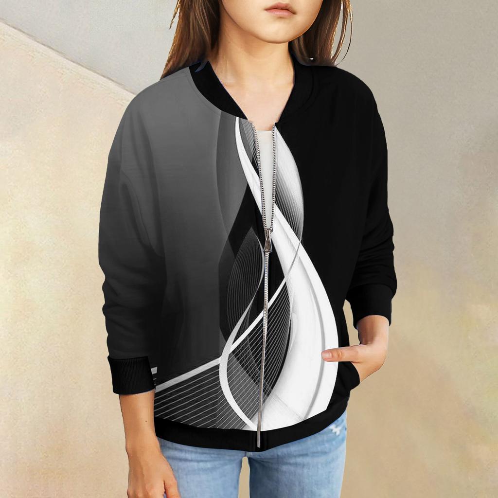 Куртки на молнии для девочек, детские осенние толстовки с длинными рукавами, верхняя одежда с карманами 5-15 лет