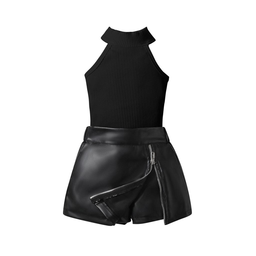 Новый летний полосатый жилет для девочек, топ из искусственной кожи, шорты, юбка для маленьких и средних детей