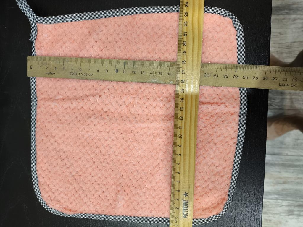 Возможно плохо видно на фото. Но размер 20*20, а не тот что заявлен в описании. Это не то что ее полотенце, даже не салфетка. Просто синтетическая сетка слегка набитая ватой. И уж точно 120 рублей никак не стоит!!!! Просто КОШМАР какой-то