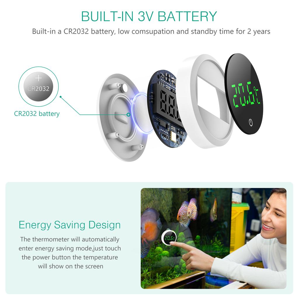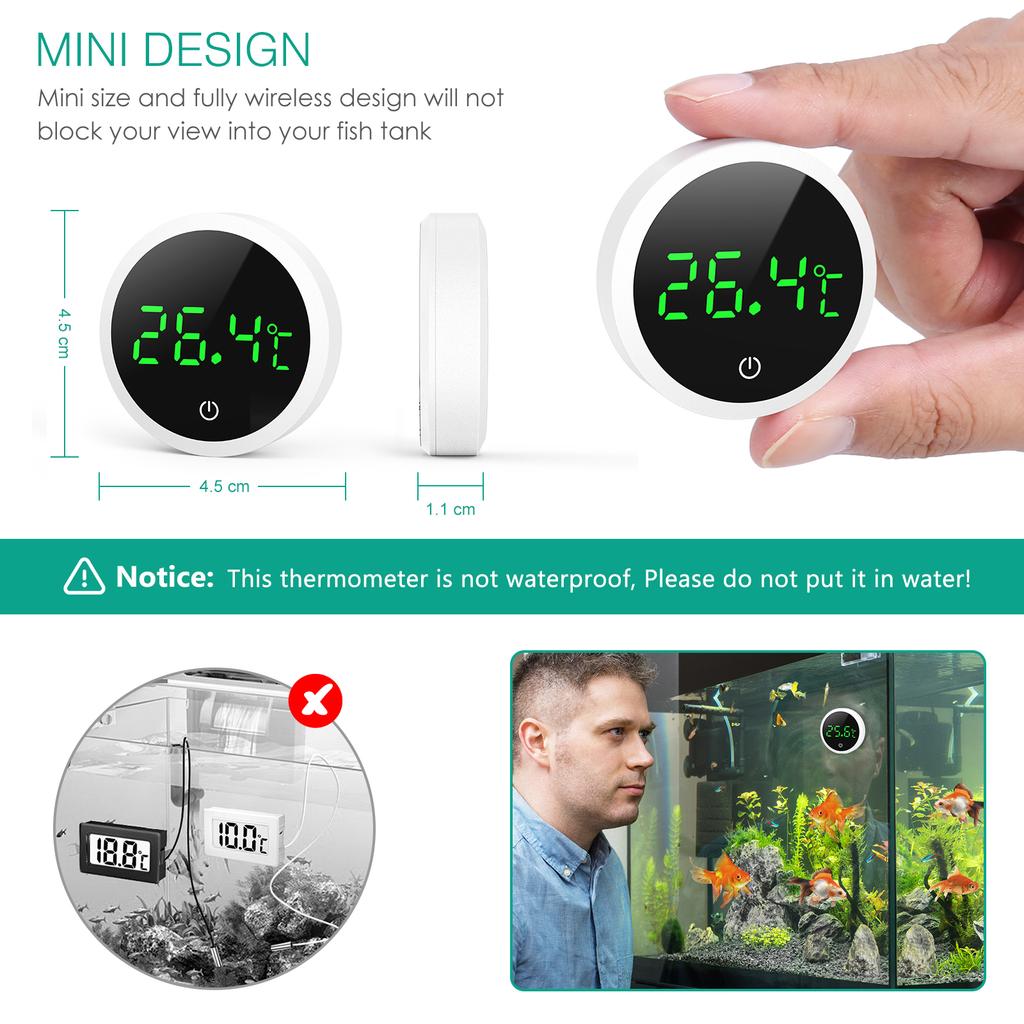 ORIA Аквариумный термометр Круглый цифровой ЖК-термометр Электронный измеритель температуры аквариума Мини-термометр для рептилий