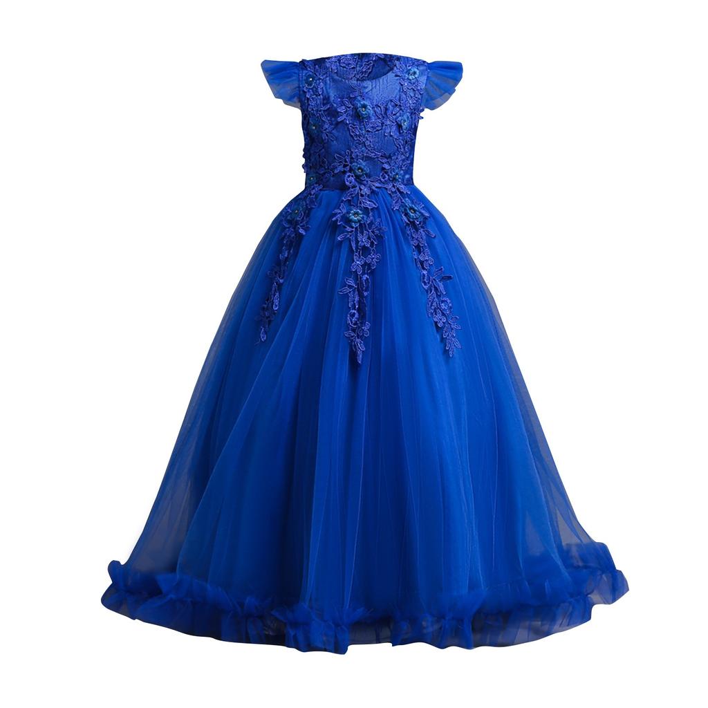 Юбка принцессы, платье для девочек, детское сетчатое длинное платье в пол, среднее и большое детское сетчатое кружевное торжественное платье