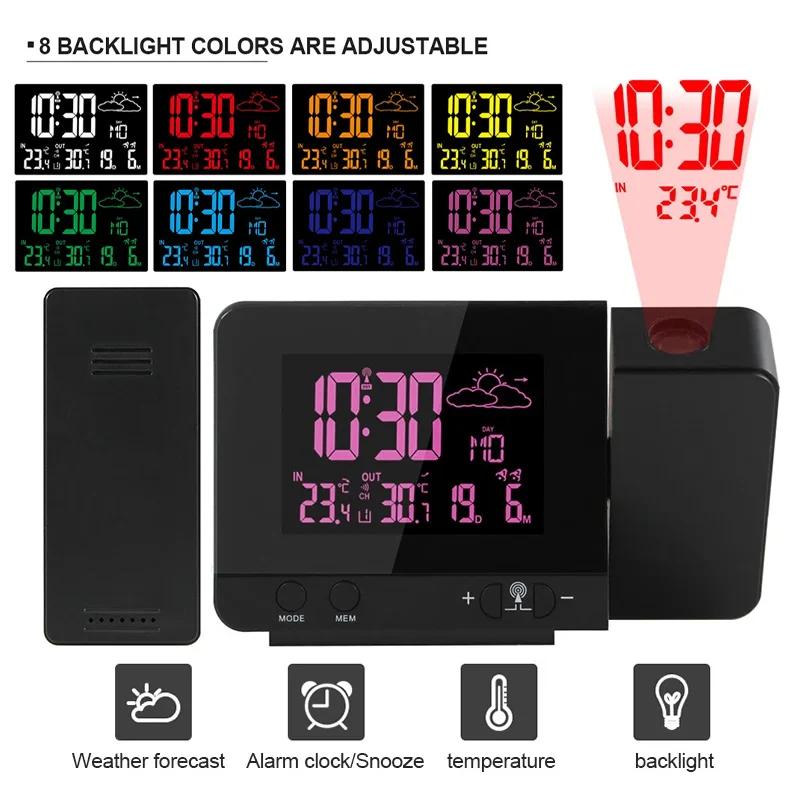 Метеостанции для помещений 8 цветов Проектор экрана Цифровой будильник Настольные светодиодные часы с проекцией температуры и времени