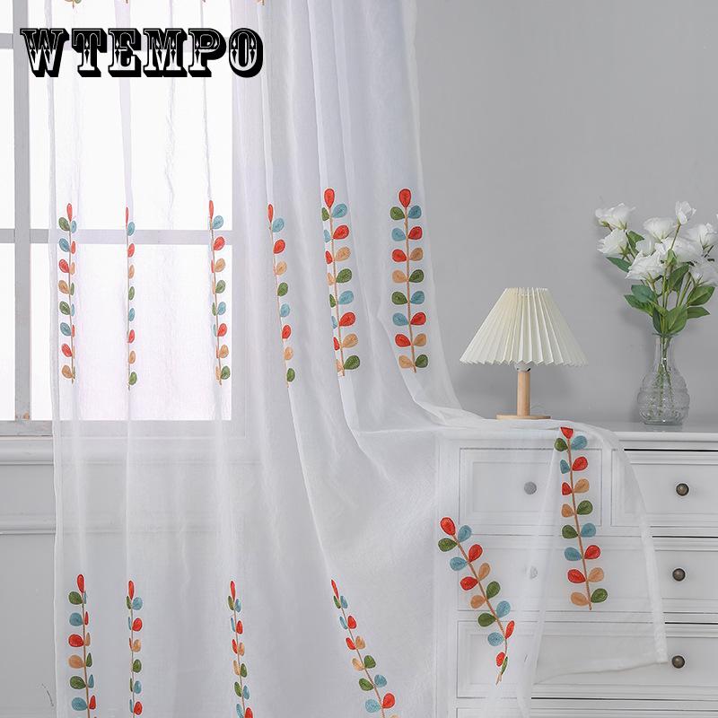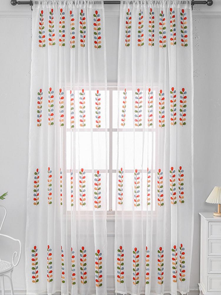 Занавеска из марли с вышитым узором в виде разноцветных листьев, в скандинавском стиле, полностью из полиэстера, светопропускающая, вышитая