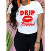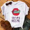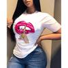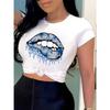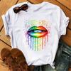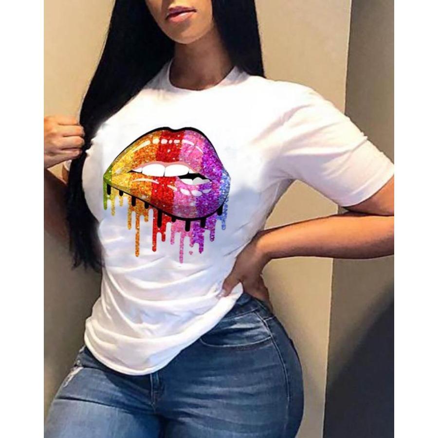 Красочные губы девушка напечатаны простые модные свободные круглый вырез чистый хлопок футболки женские