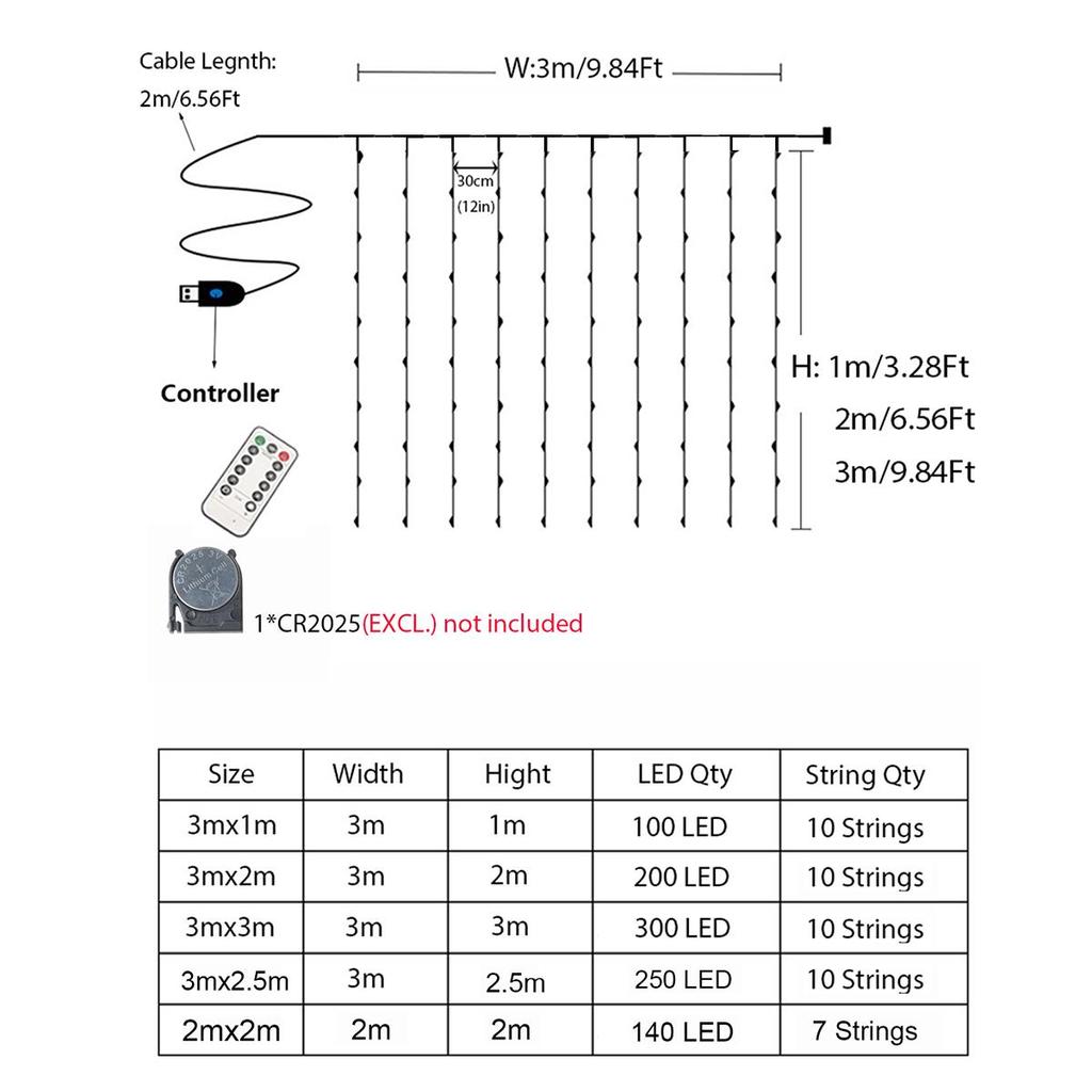2M/3M занавеска гирлянда наружная свадебная гирлянда гирлянда на Новый год занавеска для окна терраса сад вечеринка рождественские украшения