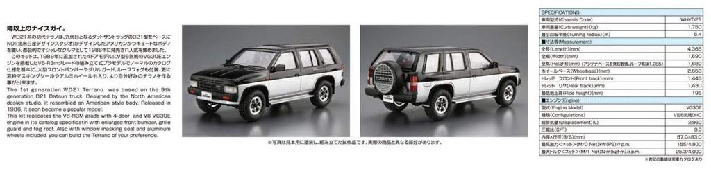 AOSHIMA Модель автомобиля серии Nissan D21 Terrano R3M 1991 Пластиковая модель 1/24 № 106 V6-3000