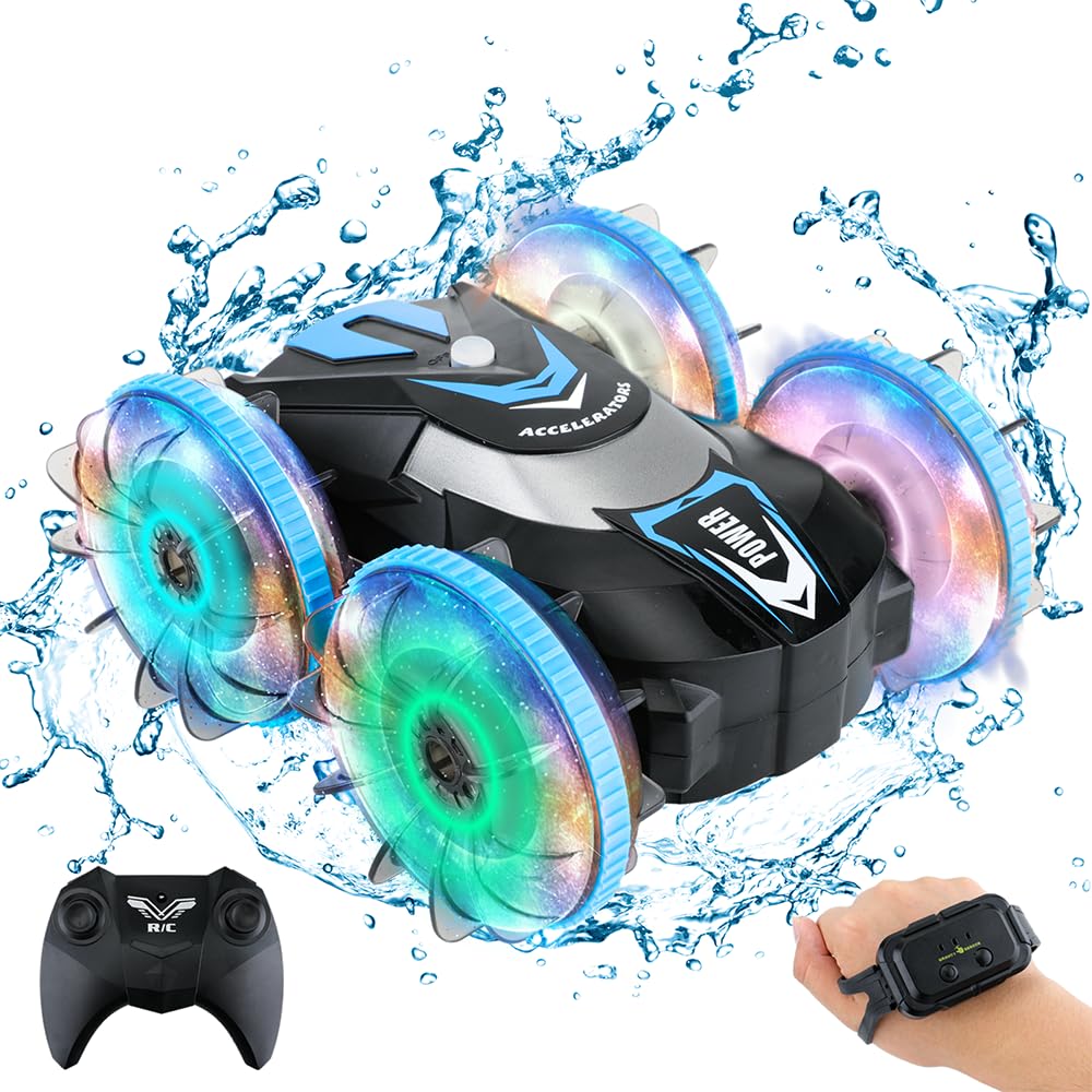 [Амфибийный и вездеходный, подходит для действий в любом месте] Этот радиоуправляемый автомобиль-амфибия обладает потрясающими характеристиками и может передвигаться не только по суше, но и по воде! Его можно использовать в любой среде, включая бассейны, реки, песчаные пляжи, газоны, склоны с уклоном 45° и каменистые участки, пробуждая в вас чувство приключения.. Кроме того, водонепроницаемое кольцо и дренажные отверстия защищают корпус автомобиля, позволяя вам наслаждаться вождением под водой со спокойной душой.. Дети и взрослые наверняка будут очарованы тем, как плавно он движется по любой местности!