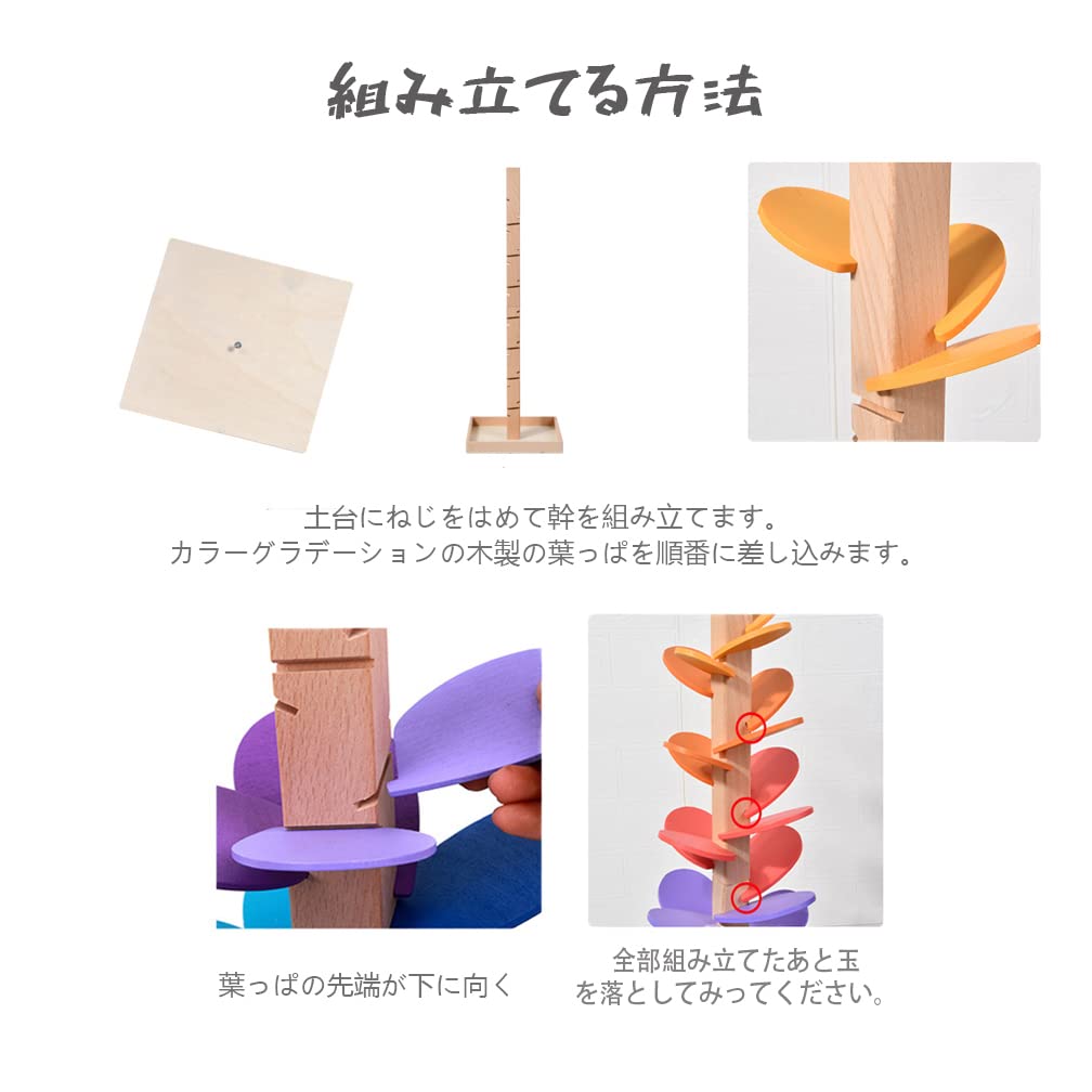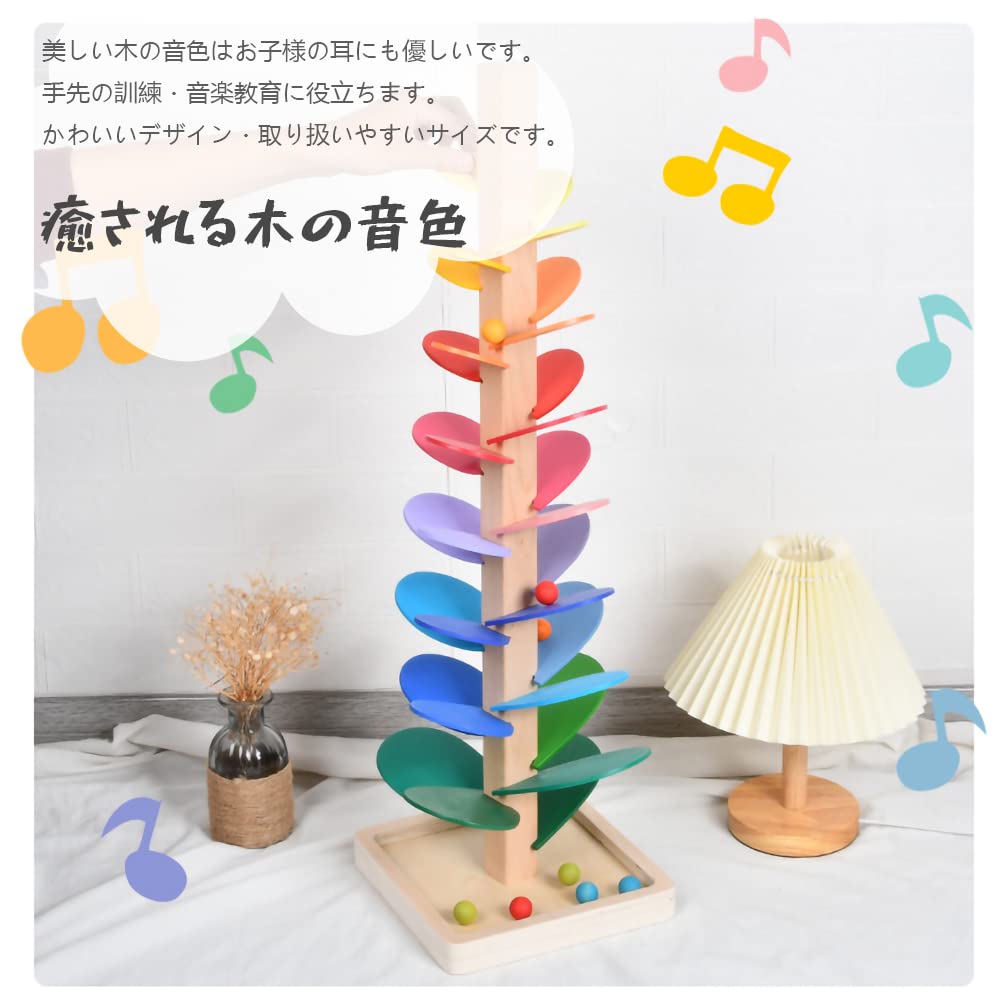 [Как играть] Когда вы бросаете мяч сверху, вы услышите тихий звук удара мяча о дерево.. Независимо от того, катаете ли вы один или несколько мячей, вы можете наслаждаться наложением различных звуков.. Слушая красивые звуки и следя глазами за движением катящегося мяча, обращая внимание и следуя за мячом, вы поможете развитию остроты зрения вашего ребенка.. Дети зачарованы звуками и движениями и хотят играть снова и снова, не испытывая при этом скуки.