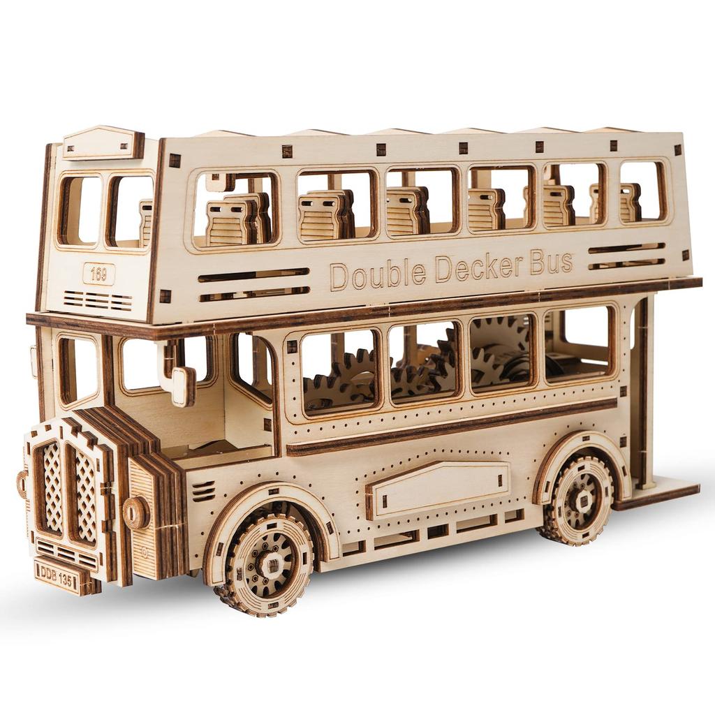 🌸【Забавный набор для сборки 3D-модели двухэтажного автобуса】: 3D деревянная модель двухэтажного автобуса-автомобиля, интересная и простая в сборке.. Сделайте это сюрпризом, которым вся семья сможет насладиться вместе.. Размер готового продукта: 27,6 * 8,5 * 16,8 см. Сложность установки: Средний (4/5). Идеально подходит для тех, кто любит головоломки и сложные задачи.. Деревянная 3D-головоломка Hallisun DIY — отличный подарок на день рождения, выпускной и достойное дополнение к вашей коллекции.. Его также можно использовать в качестве красивого украшения интерьера.
