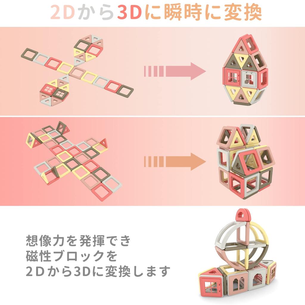 [Безопасность превыше всего] Этот продукт соответствует стандартам безопасности игрушек.. Одобрено CE, CPC (Сертификат на детскую продукцию) Магнитная игрушка сертифицирована по стандартам EN-71, ASTM, HR4040. Эта магнитная игрушка-блок изготовлена из высококачественного японского материала ABS + натуральные магниты, а в центре каждой пластиковой стороны встроен ферромагнитный магнит, поэтому ее можно мыть водой, и она останется устойчивой даже после длительного использования.. Это развивающая игрушка-магнитный блок для мальчиков и девочек, которая не ослабляет свою магнитную силу и не выделяет вредных веществ.. [Богатые способы игры] Магнит имеет особую структуру, поэтому у него нет северного и южного полюсов, и его можно вращать на 360 градусов.. Вы также можете наслаждаться простыми и быстрыми изменениями, которые могут производить только магниты, например, не только плоские структуры, но и сложные структуры, которые мгновенно трансформируются в трехмерные структуры.. Вы можете трансформировать такие фигуры, как парки развлечений, животные, автомобили и т. д.. [Развивать трехмерное восприятие] Используя множество математических фигур и ярких цветов для создания разнообразных моделей, дети будут стимулироваться к обучению через игру.. От 2D к 3D вы можете развить у своего мозга восприятие трехмерных форм и пространственное восприятие, что особенно полезно при изучении науки.. Вы можете играть и одновременно изучать пространственное восприятие и науку.. [Лучший выбор подарка