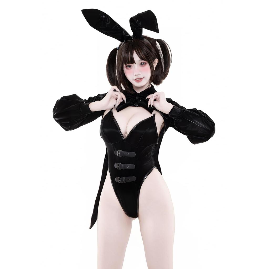 Девушка-кролик, косплей, сексуальный, искусственная кожа, тренировочный, соблазнительный, экстремальный, кролик, костюм кролика, трико, маскировка, высокие ноги, смелое нижнее белье, кроличьи уши, черный, один размер