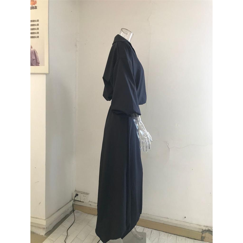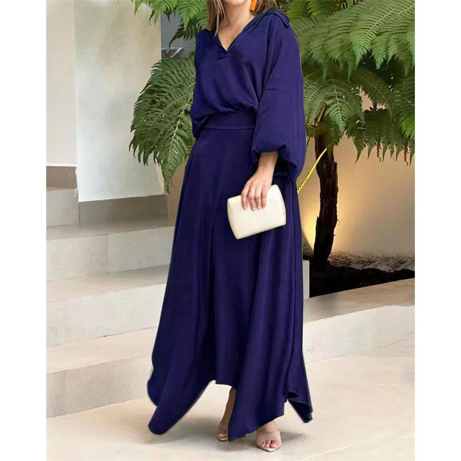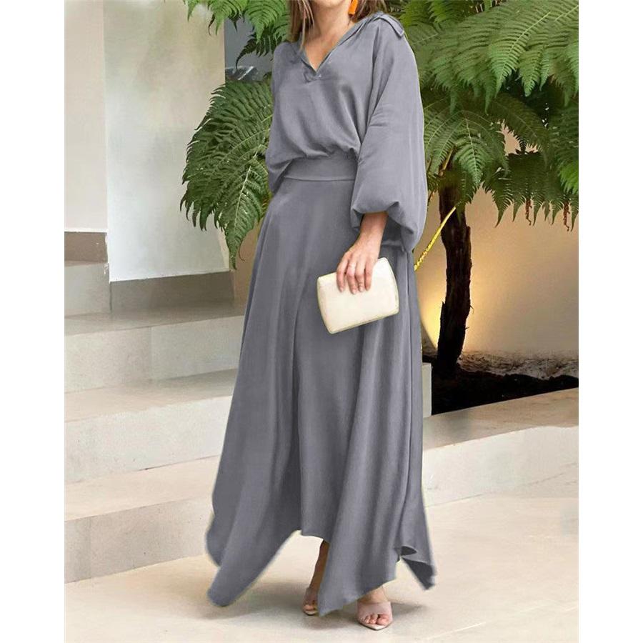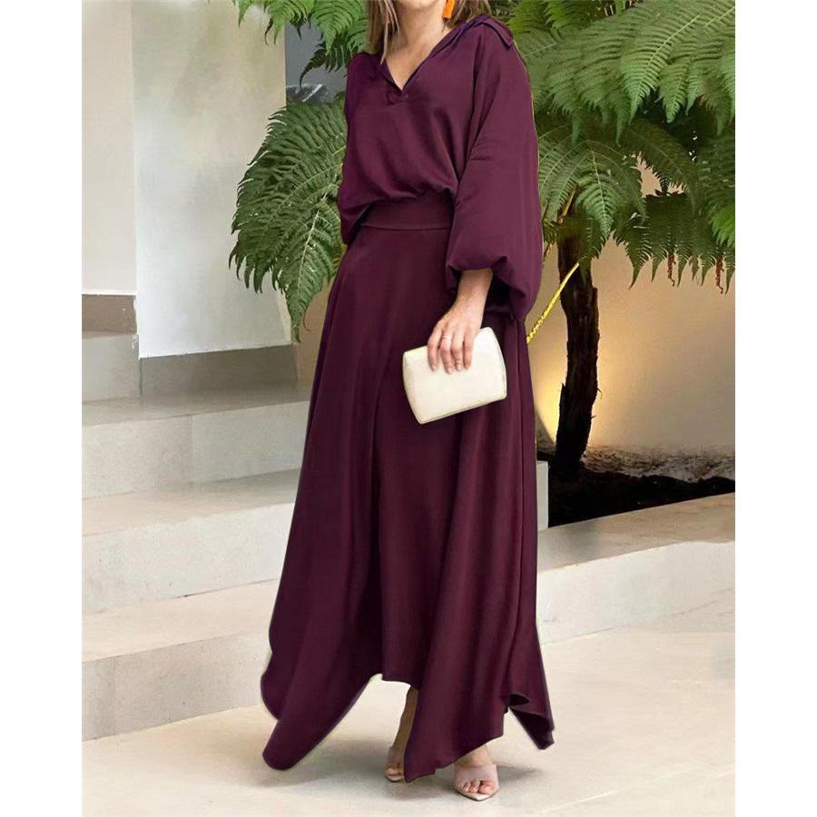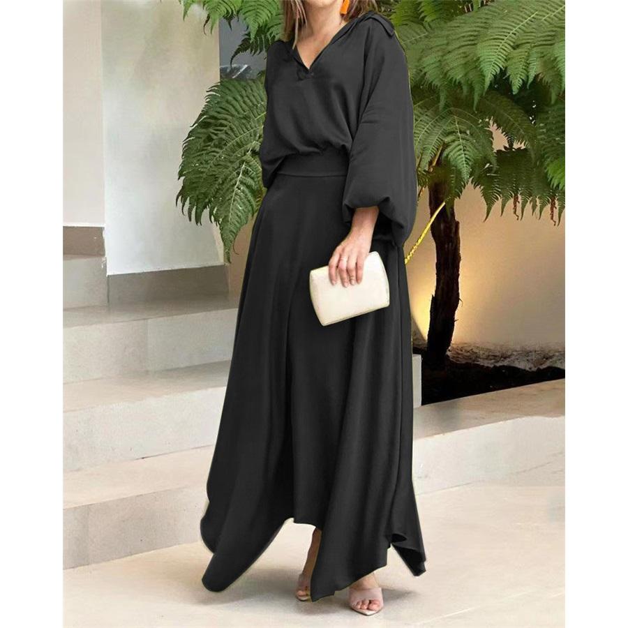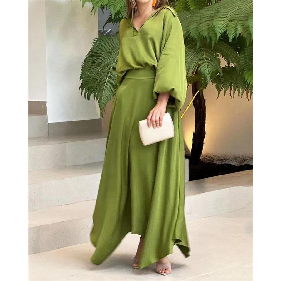 Женские комплекты свободного покроя, большого размера, однотонный топ с длинными рукавами, юбка с высокой талией