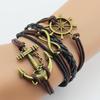 Модный женский кожаный многослойный милый браслет с подвесками в виде якоря и руля бесконечности ARI