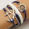 Модный женский кожаный многослойный милый браслет с подвесками в виде якоря и руля бесконечности ARI — купить товар онлайн с бесплатной доставкой по всему миру!