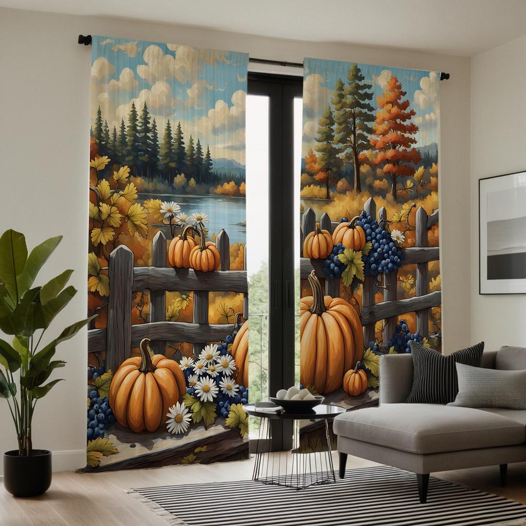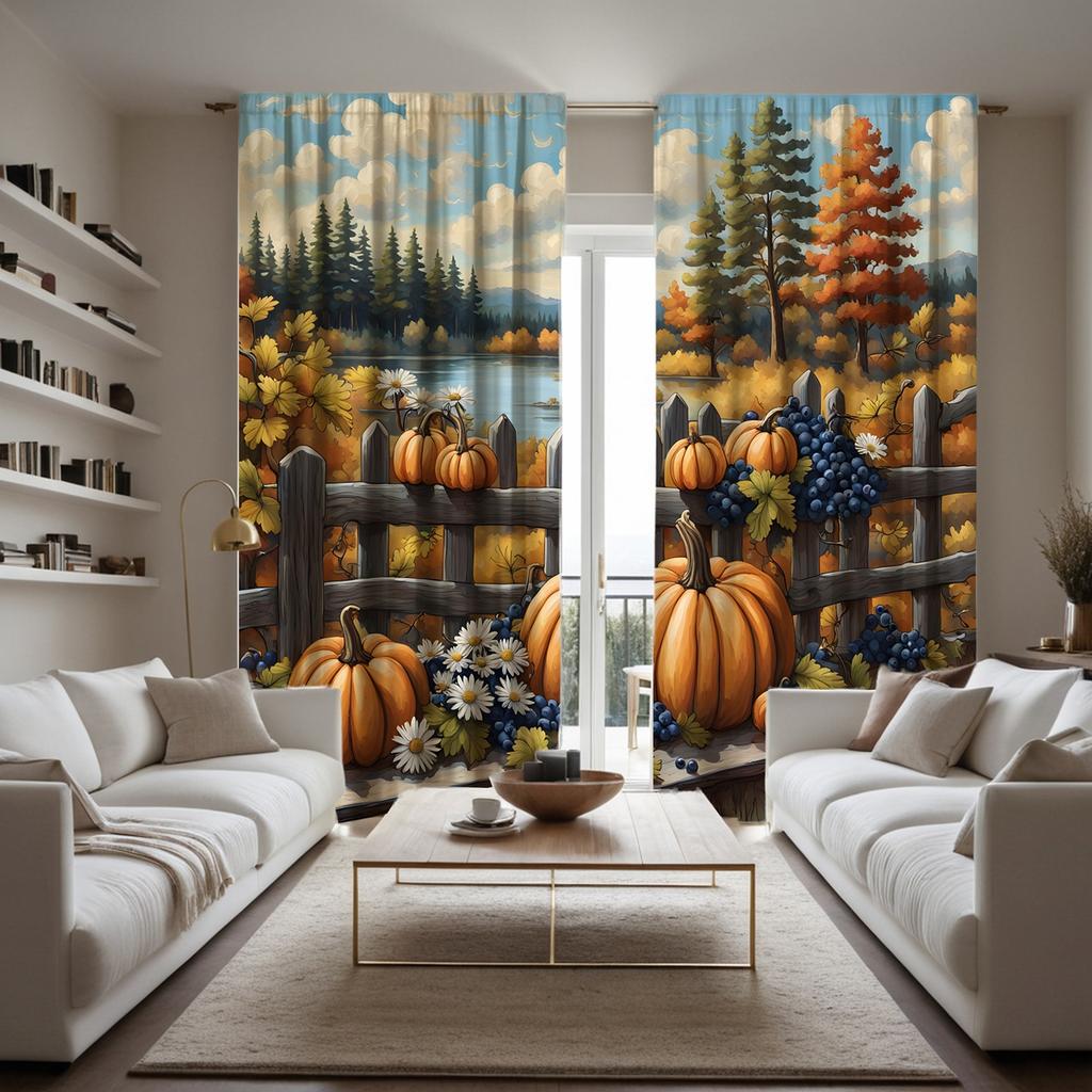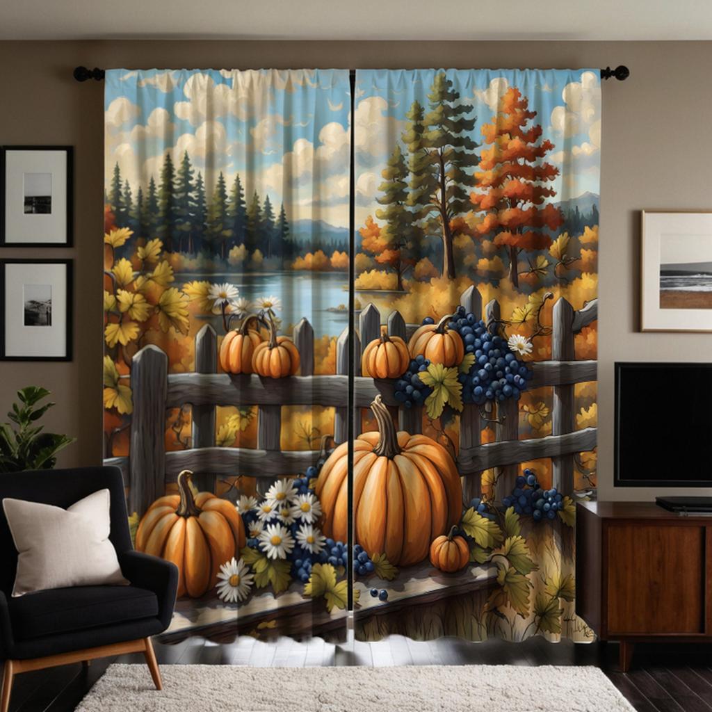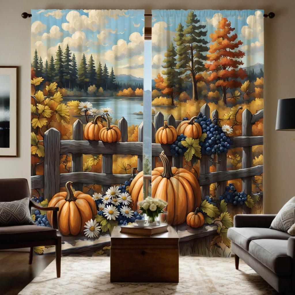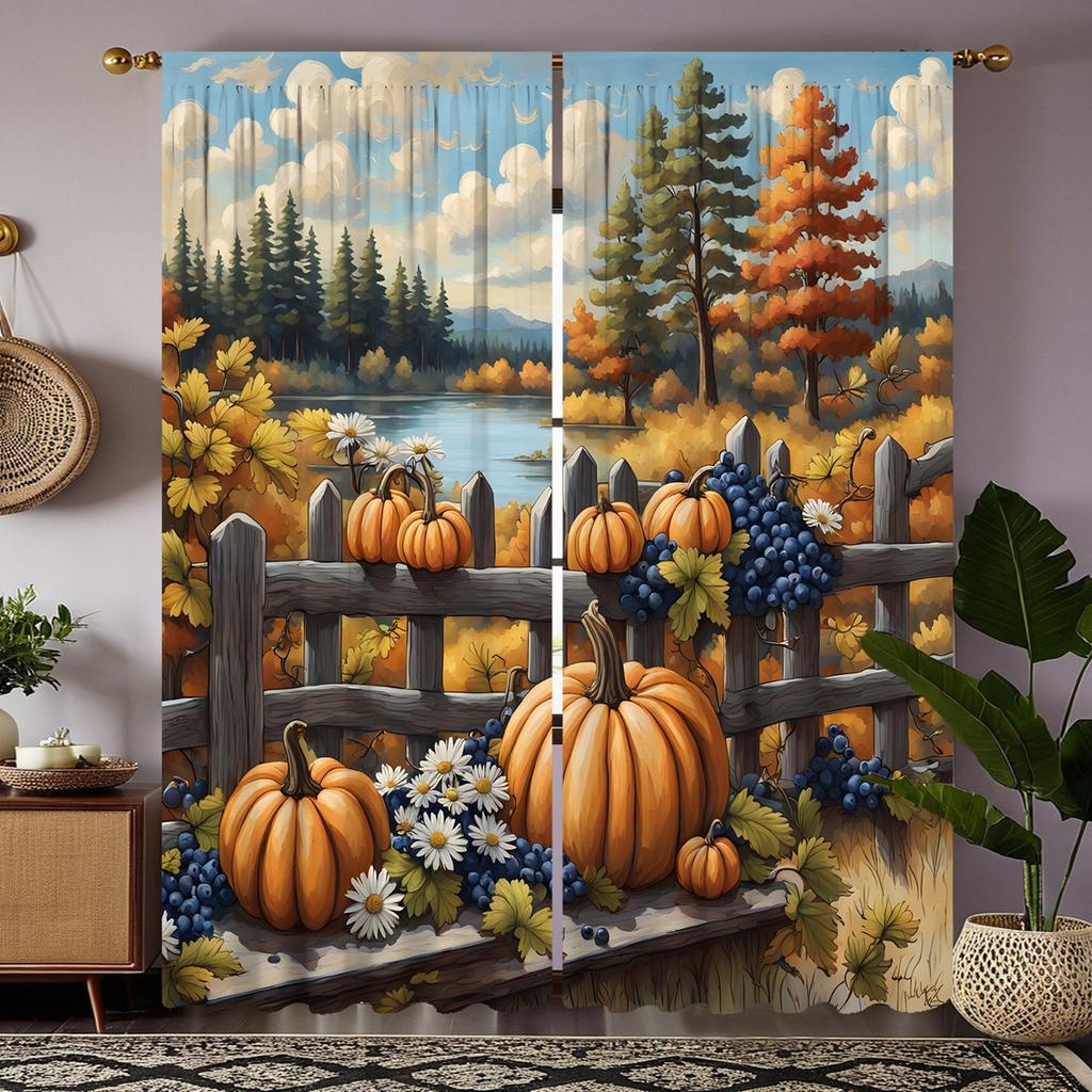 2 шт. HD наружная осенняя речная кромка тыква фрукт декоративная занавеска Желтая завязка цифровая печать занавеска украшение дома стиль d