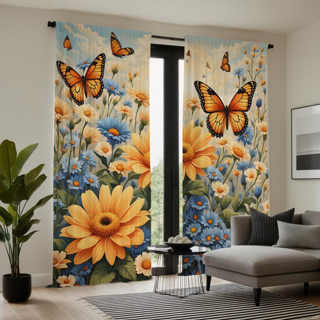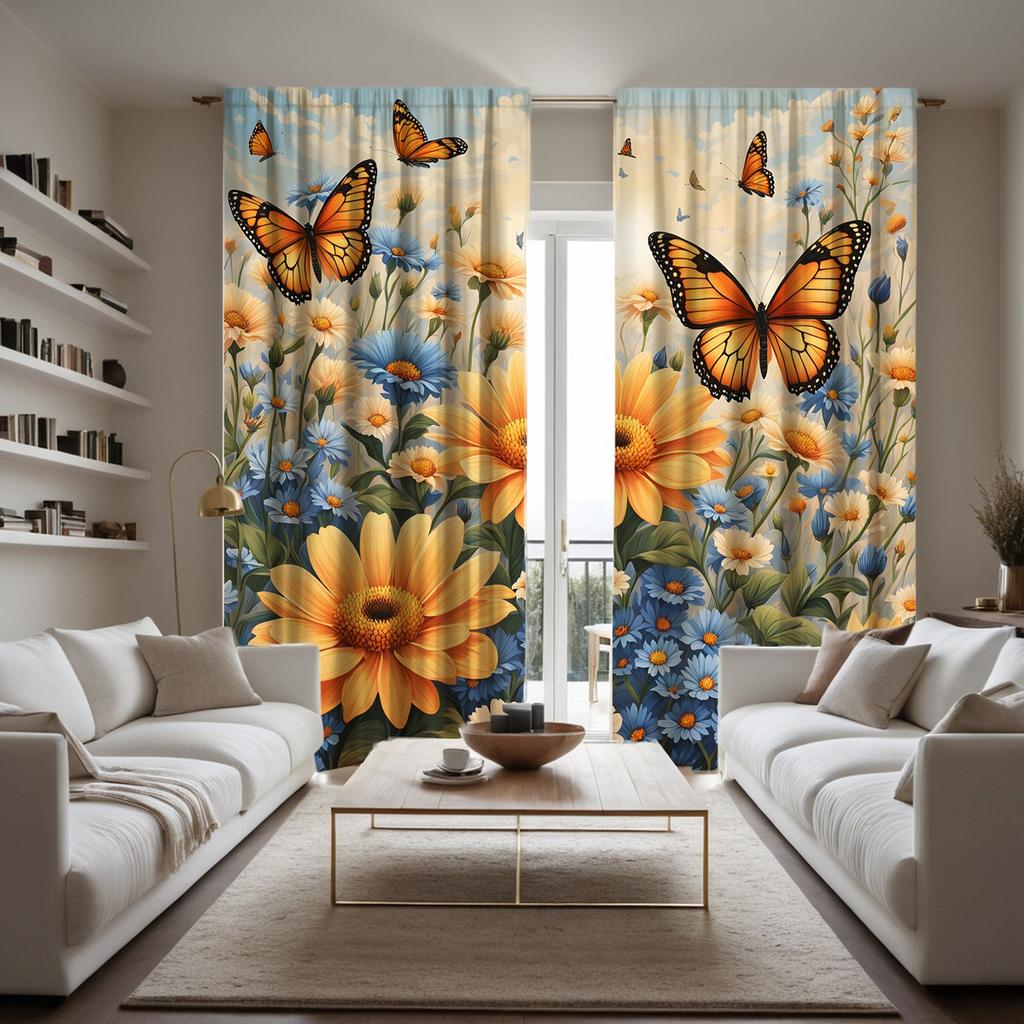 2 шт. HD садовые ромашки бабочки декоративные занавески Желтые галстуки цифровая печать занавески Домашний декор стиль Декоративная гостиная