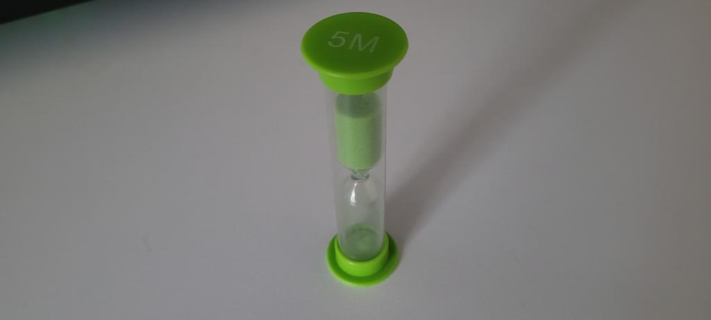 Песочные часы, вроде сыпятся. Надпись "5 минут", на самом деле 5 минут 20 секунд.
