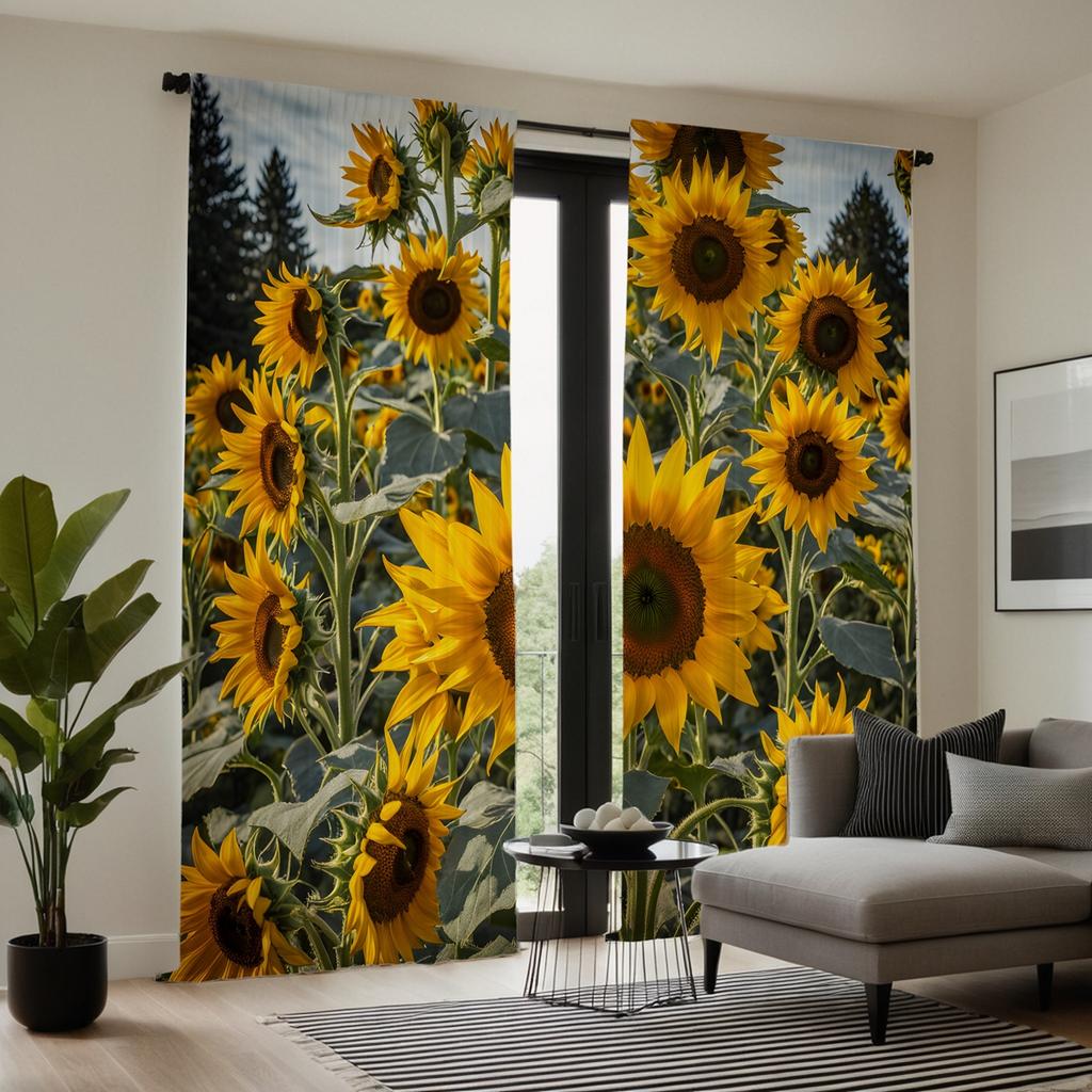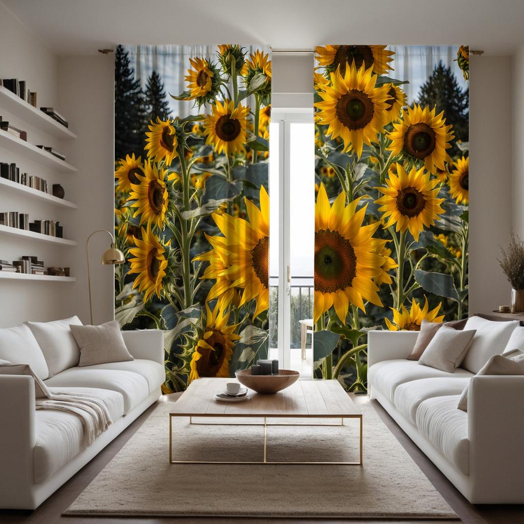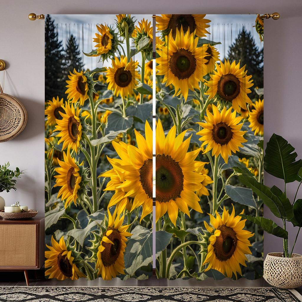 2 шт. HD занавеска с изображением подсолнуха в саду, желтая завязка, цифровая печать, стиль украшения дома, украшение гостиной, спальни, прохождение