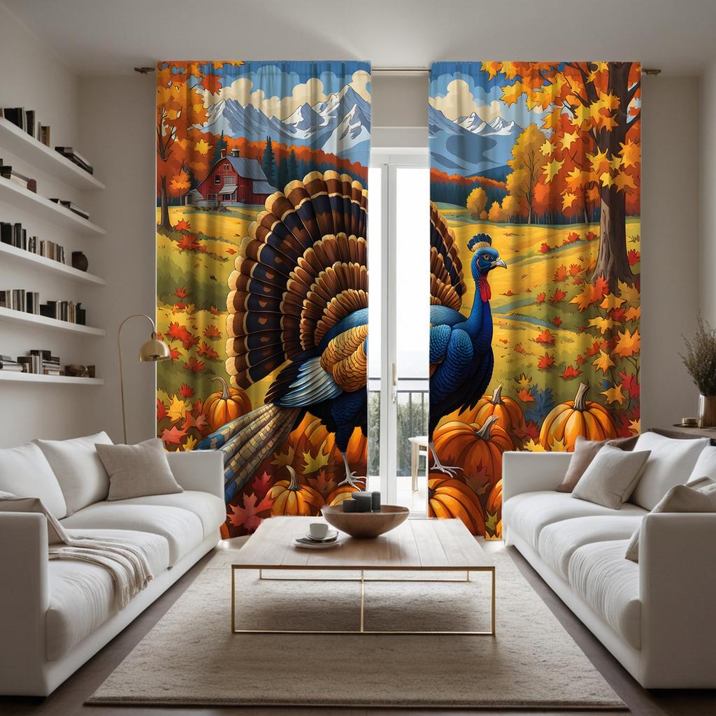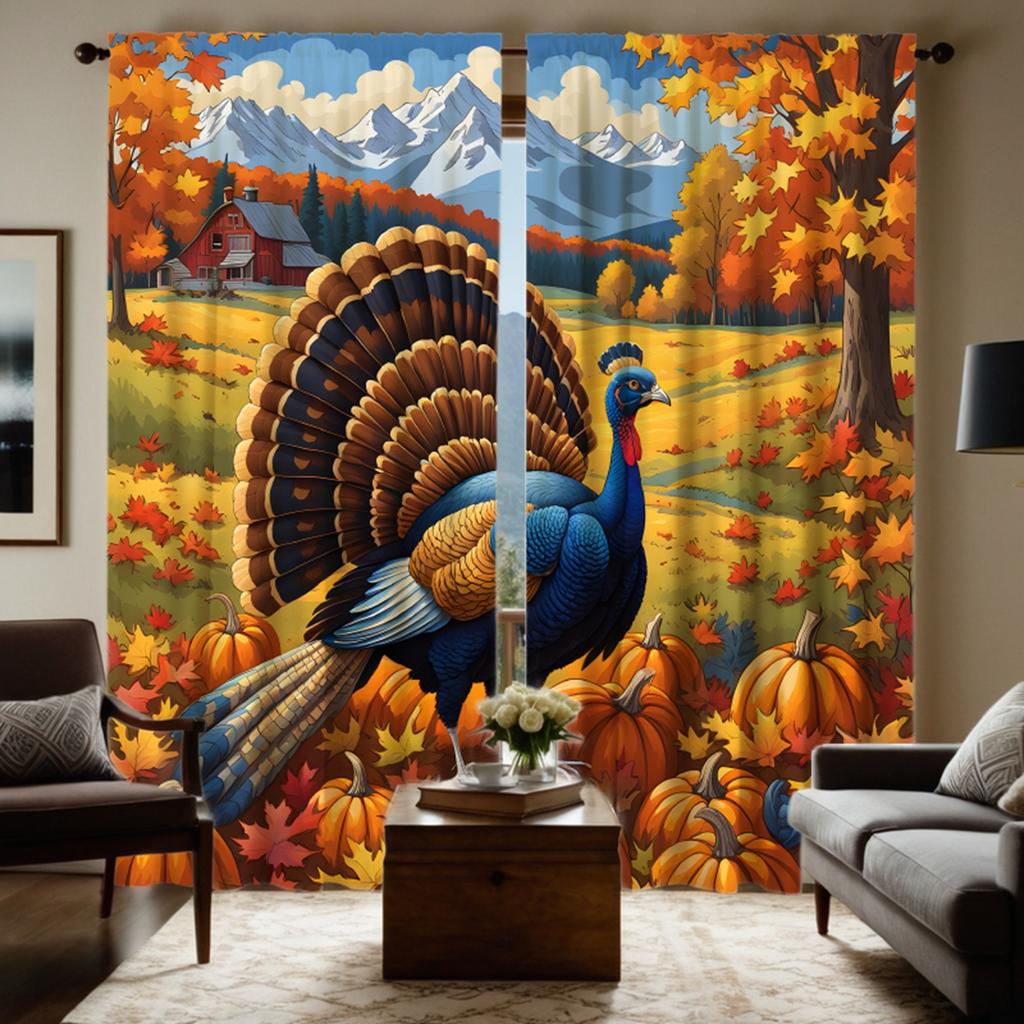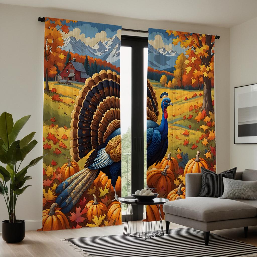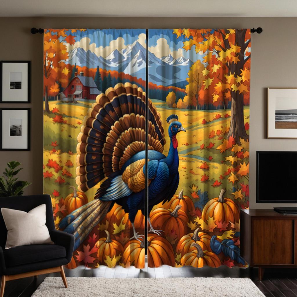 Комплект из 2 предметов HD Harvest Festival Garden тыква кленовый цветок павлин декоративная занавеска Желтая завязка цифровая печать занавеска Дом d