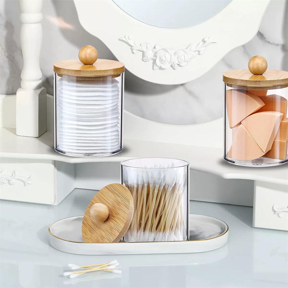 3 шт., держатель-диспенсер с бамбуковыми крышками, прозрачные акриловые банки для ванной комнаты с подносом, ватный тампон, диспенсер для хранения, многоразовый