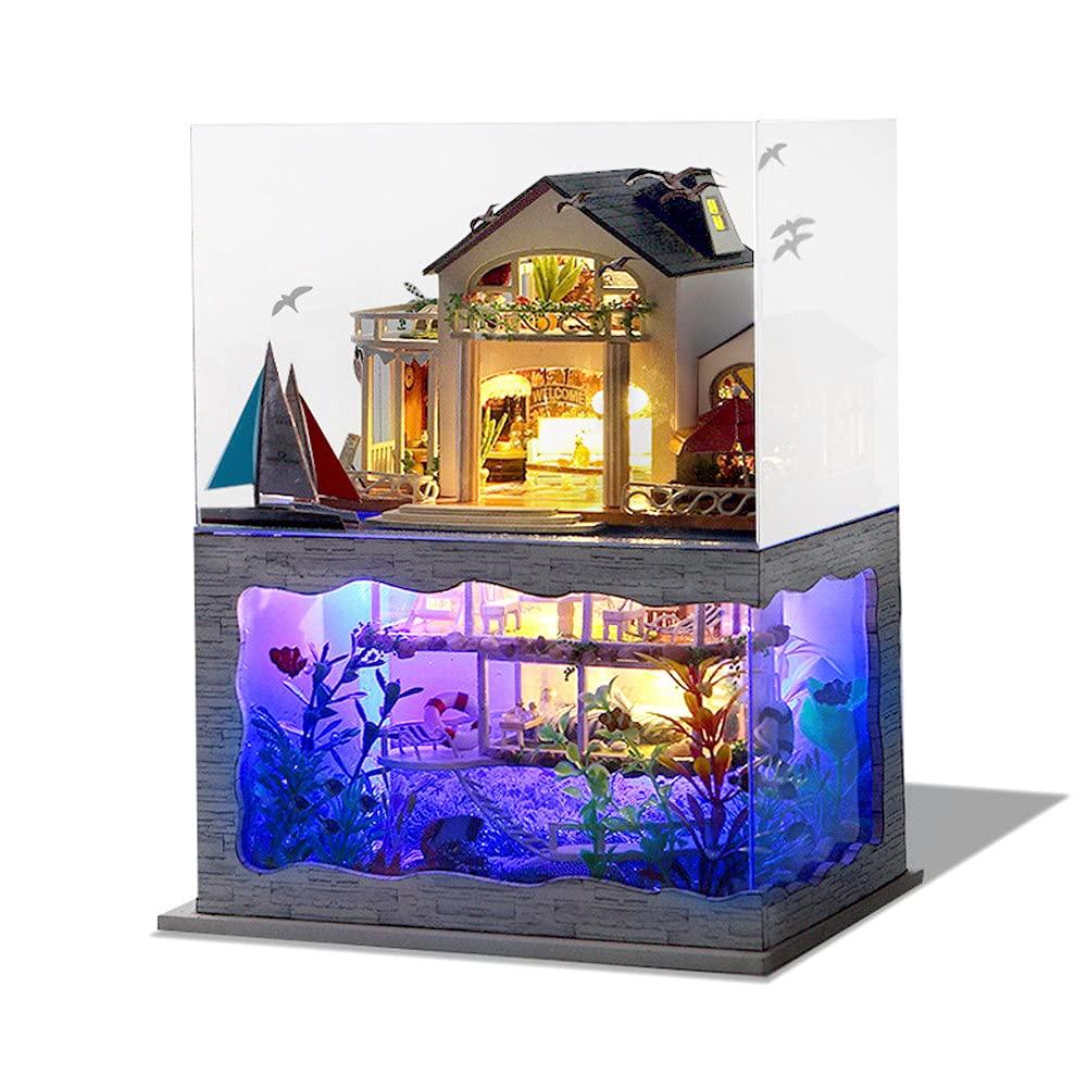 Этот продукт представляет собой набор для сборки миниатюрного кукольного домика.. Это фантастический кукольный домик с аквариумом в подвале.. Красивый двухцветный свет. Множество морских мотивов. Мы используем много готовых растений с хорошими формами и избавляемся от утомительной работы.