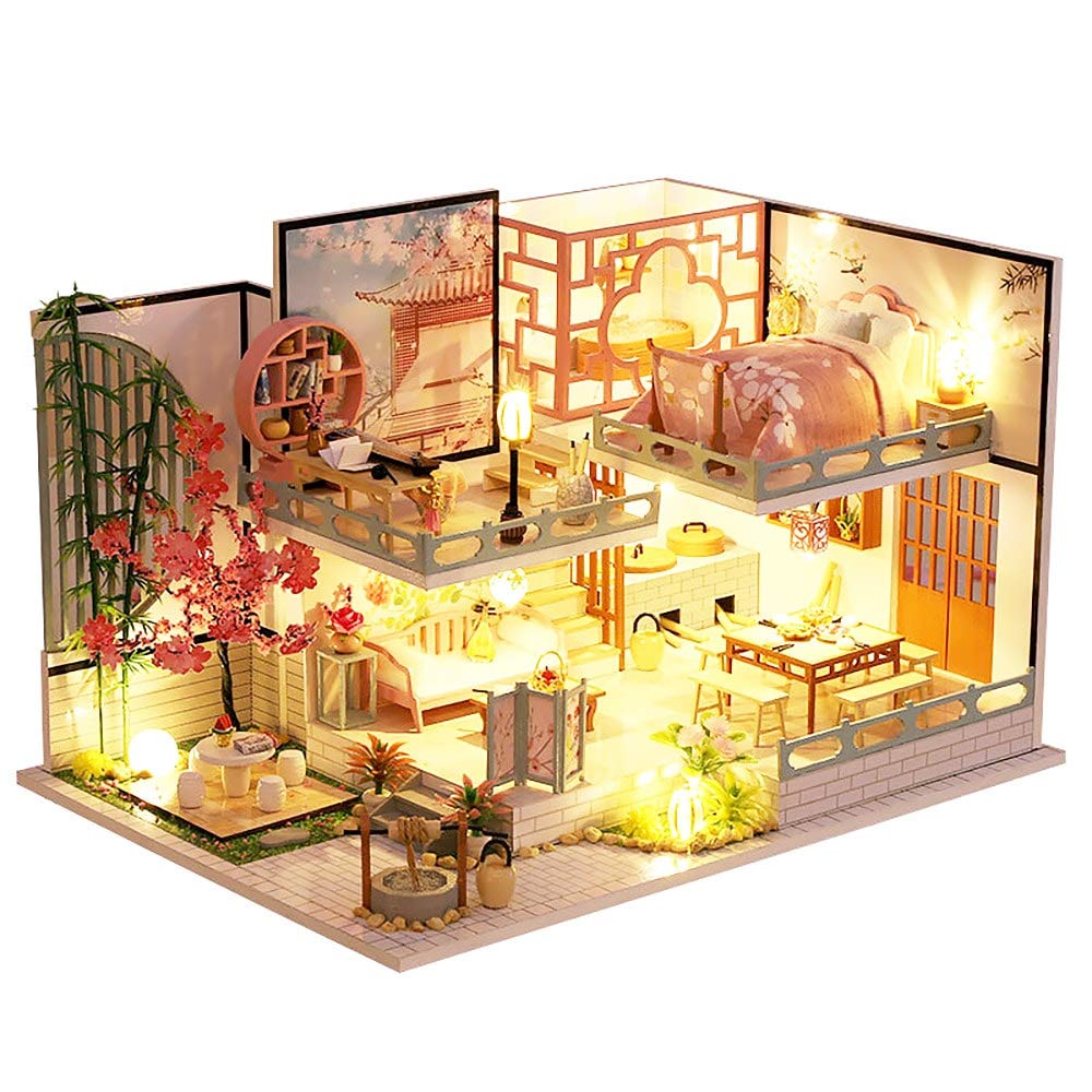 Этот продукт представляет собой набор для сборки миниатюрного кукольного домика.. Великолепный кукольный домик в китайском стиле с привлекающими внимание цветущими вишнями во дворе.. Это одно из самых больших двухэтажных зданий в серии, и оно может многое предложить.. Интерьер представляет собой смесь китайского и современного стилей.. Он сделан с большим вниманием к деталям и настолько великолепен, что вы будете заворожены каждый раз, когда будете на него смотреть.