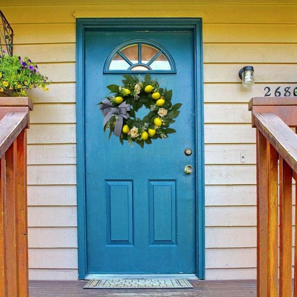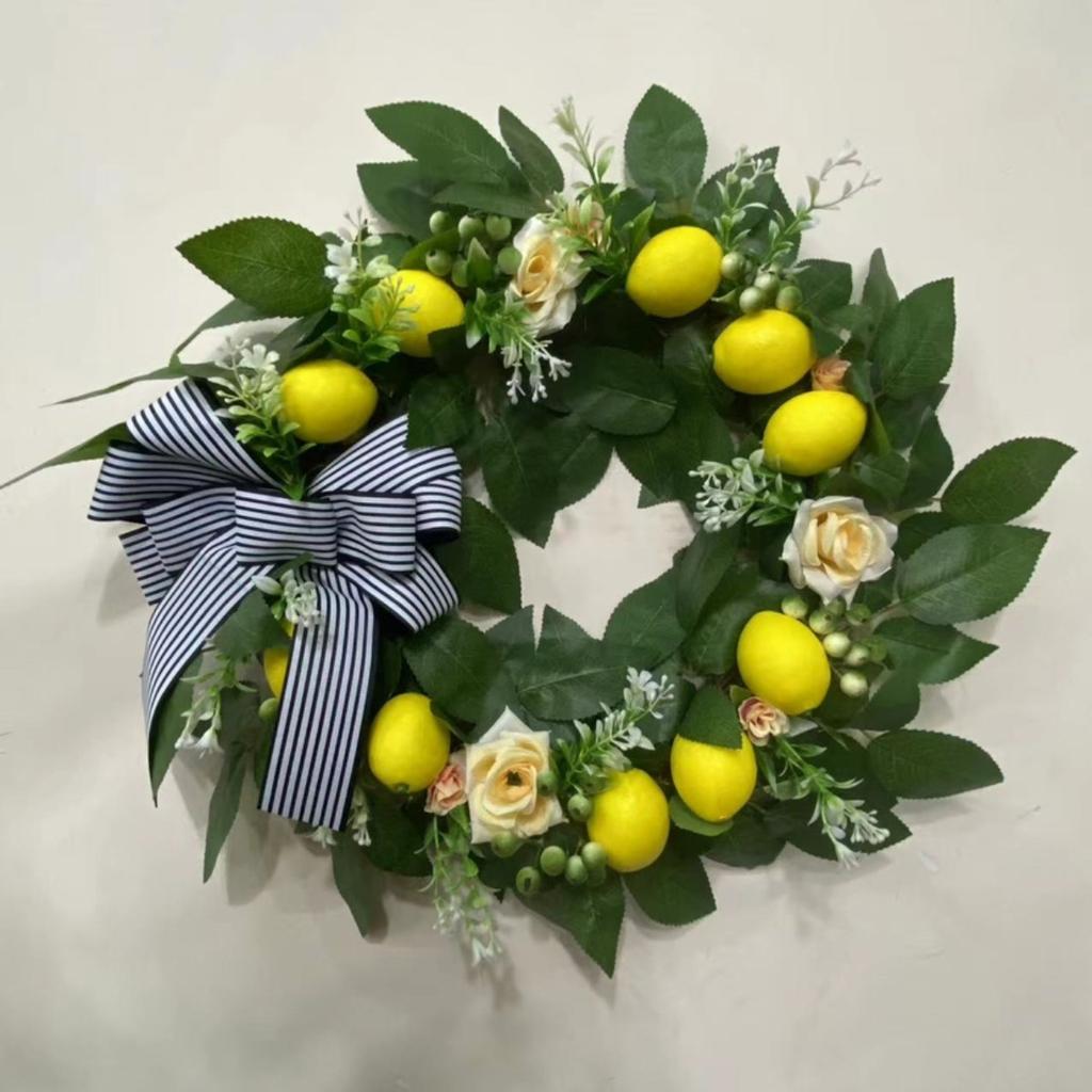 Искусственный лимонный венок для входной двери, пион, гортензия, зеленые листья, венок с ягодами, весенний летний венок для украшения стены, окна, вечеринки