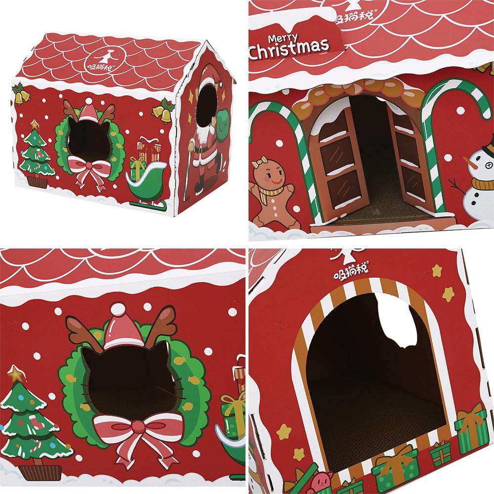 HOOPET Рождественский домик для кошки, картон, скребок, лежанка для питомца, гофрированная картонная коробка, гнездо для кролика, котенка, щенка, рождественские украшения