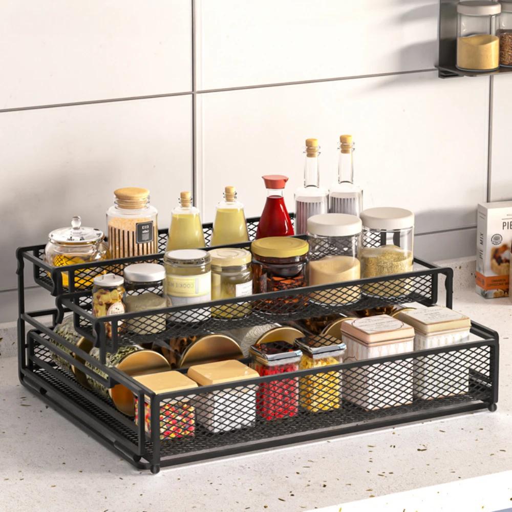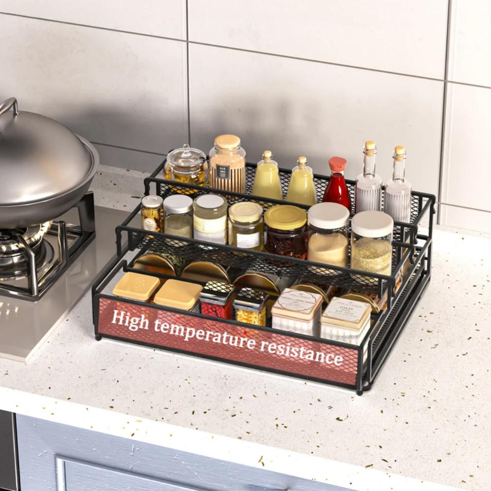 Выдвижная полка для хранения, 3-слойная, складная, кухонная, для приправ, съемные металлические полки для хранения, водонепроницаемый органайзер для дома