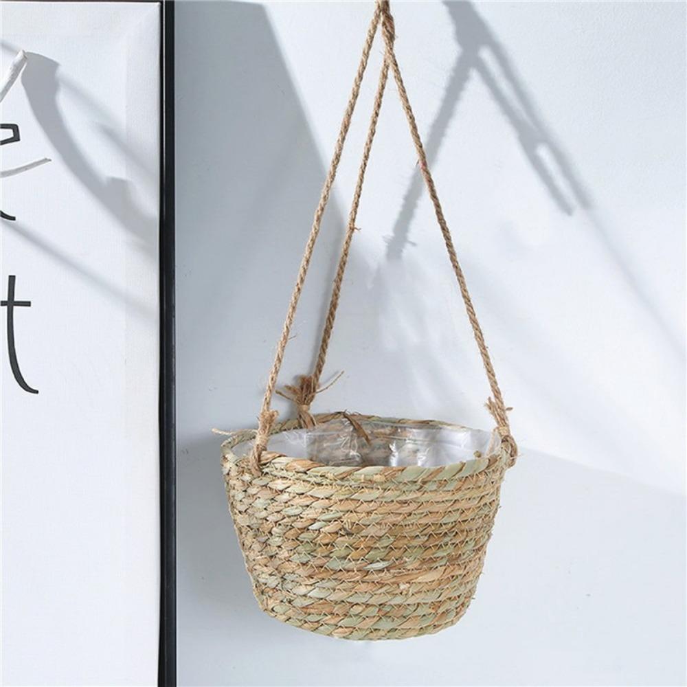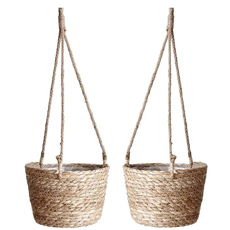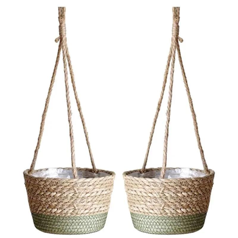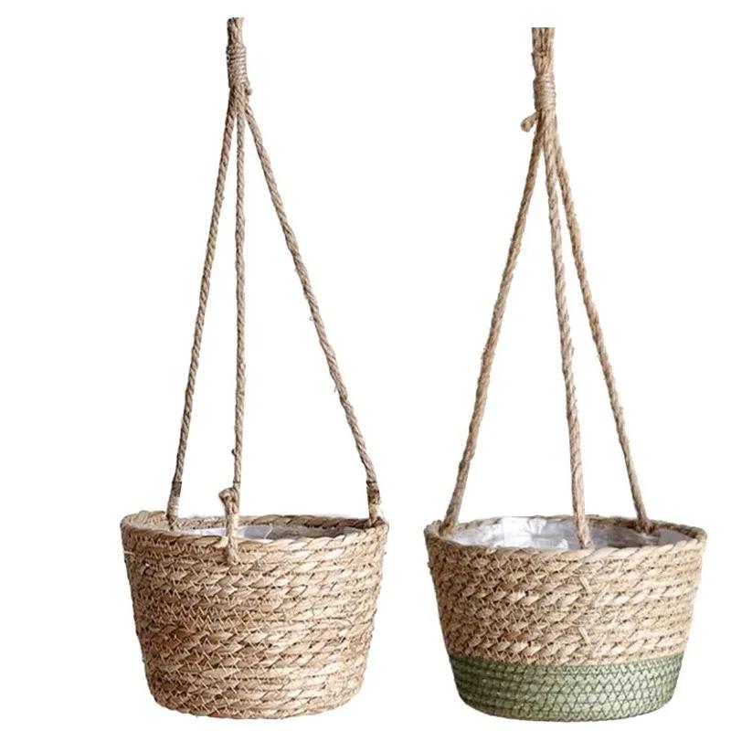 Соломенный плетеный подвесной цветочный горшок, плетеная настенная корзина для растений, подвесной цветочный горшок Pucao, простые зеленые растения, горшечные корзины