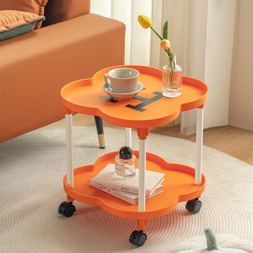 Круглый приставной столик на колесах экономит место тележка двухъярусная полка приподнятый дизайн передвижной стеллаж для хранения небольшой журнальный столик