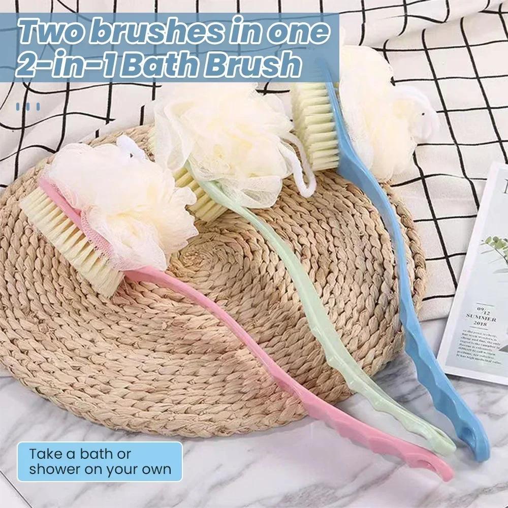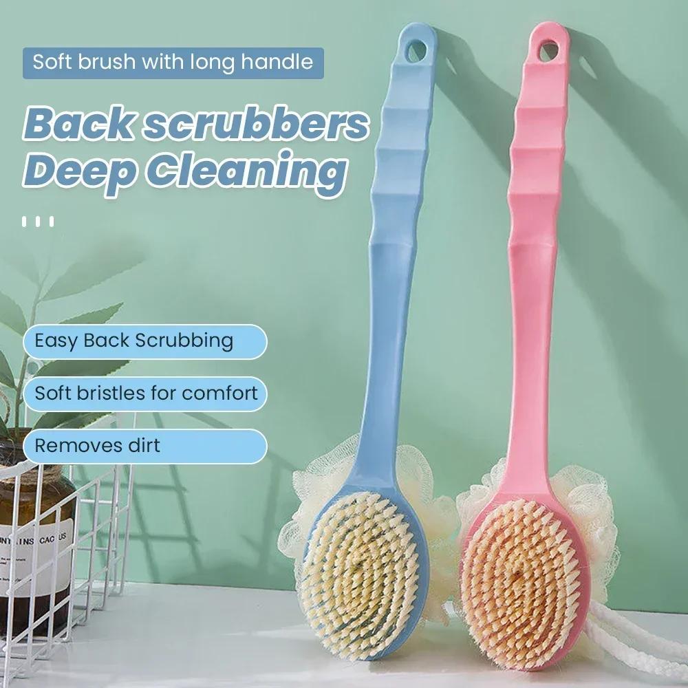 Щетка для тела/спины в ванной, мягкая двухсторонняя массажная щетка для ванны, скребок для глиняного пола, щетка для ванны 2-в-1 с длинной ручкой и крючком
