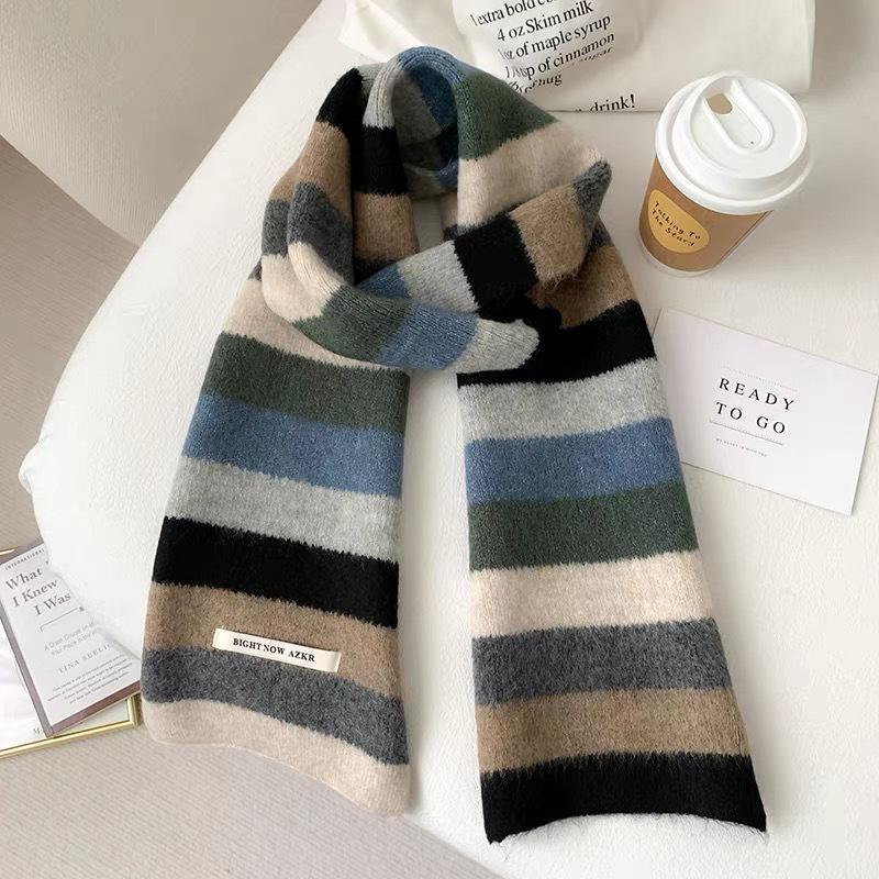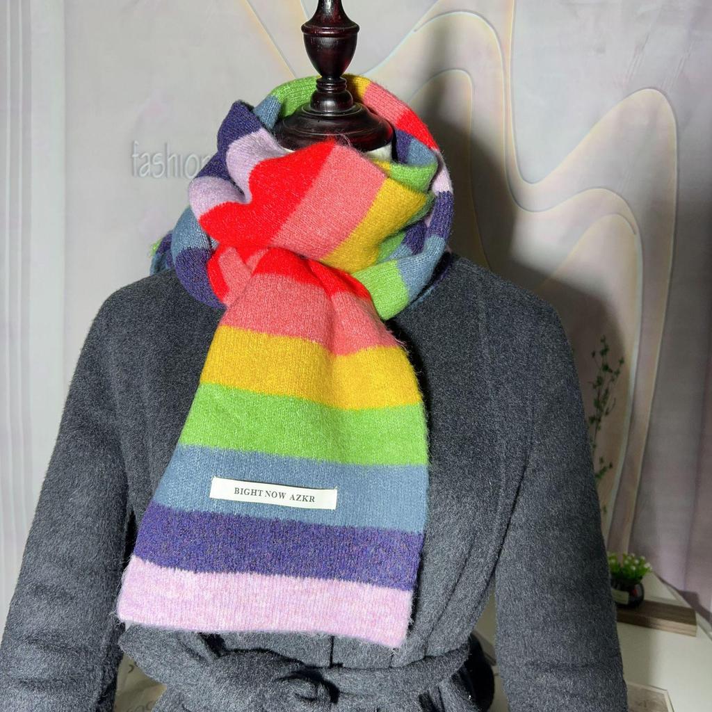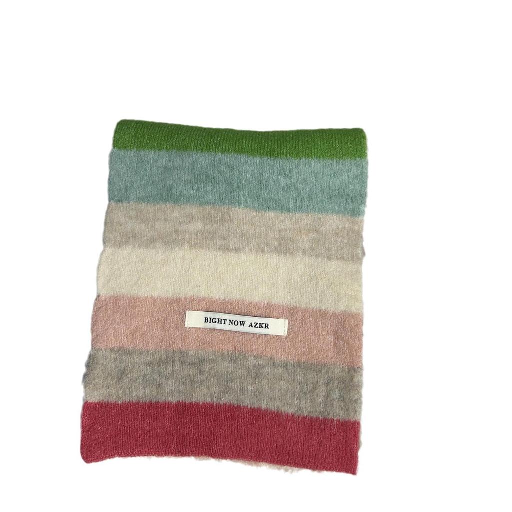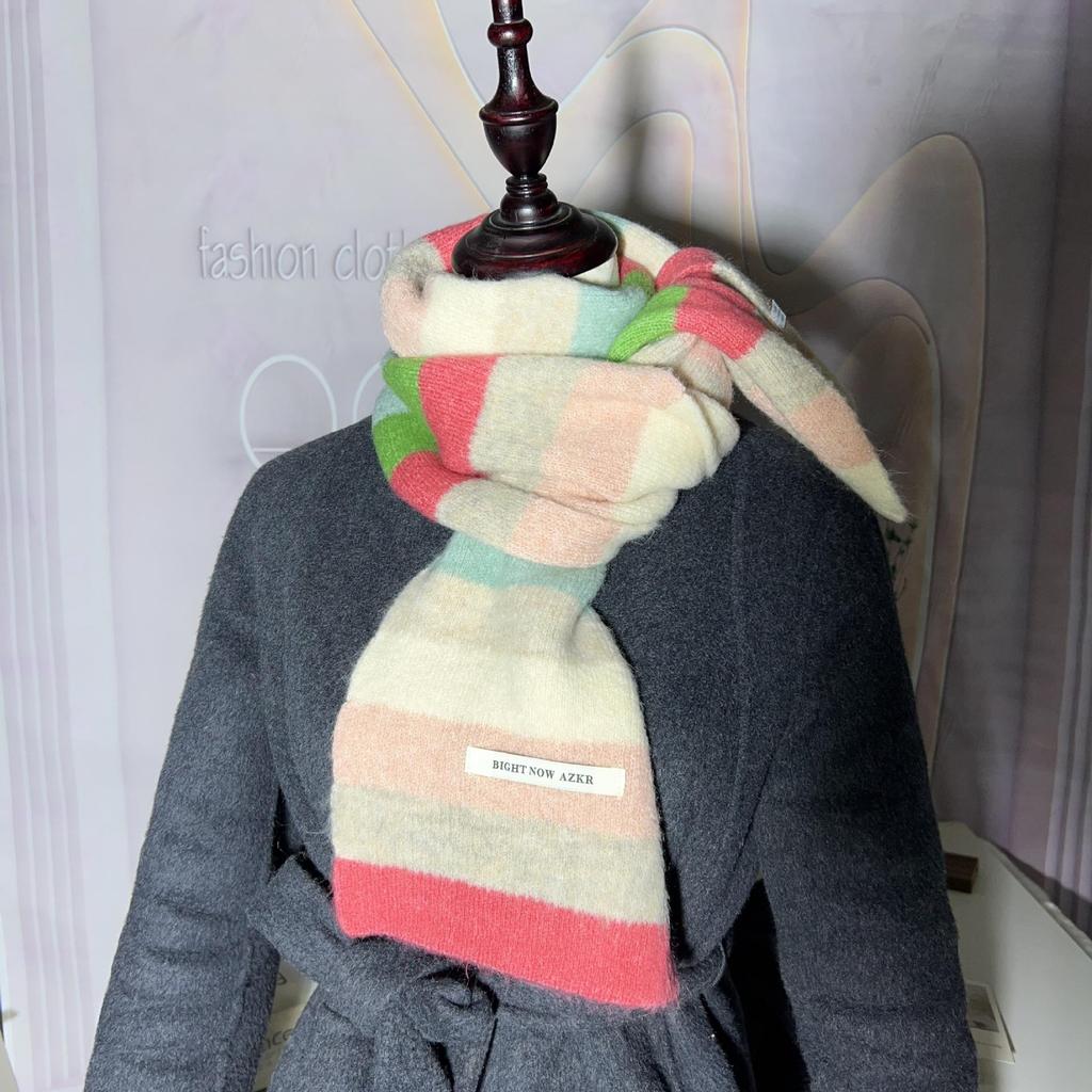 Женский зимний модный вязаный шерстяной шарф: Корейский полосатый дизайн, мягкий, модный, универсальный