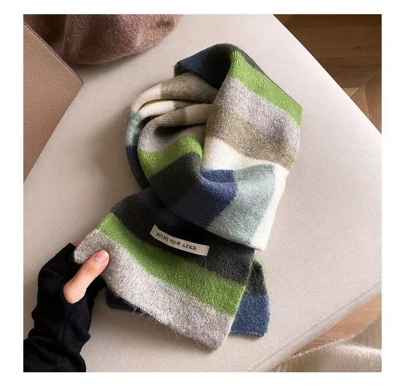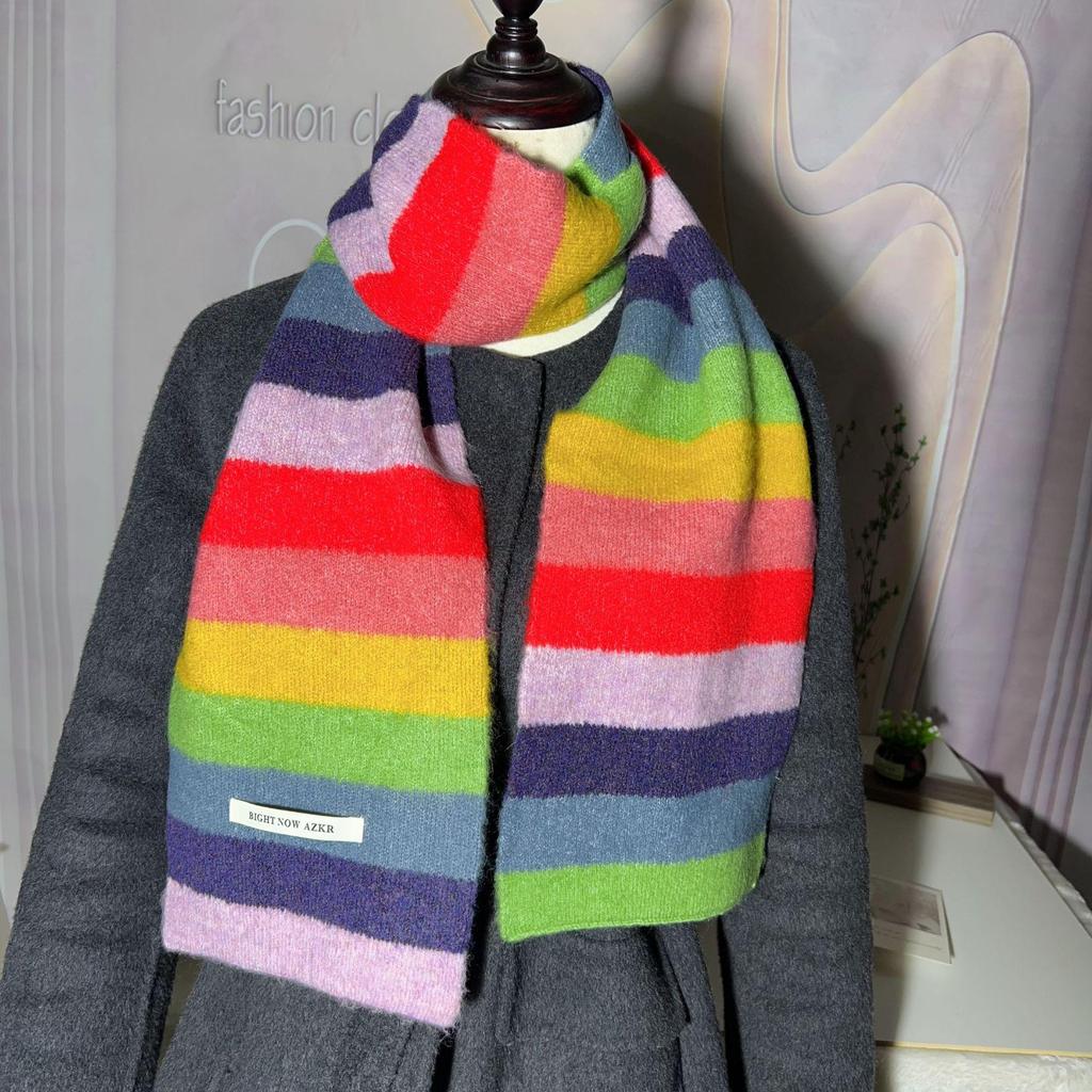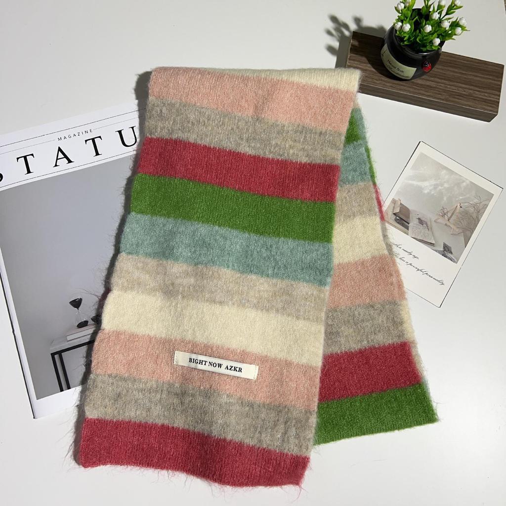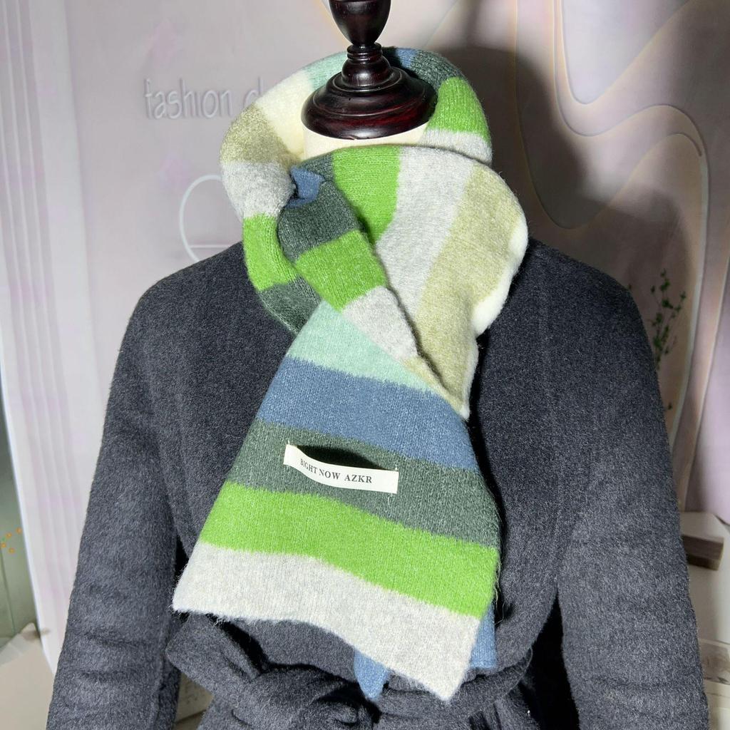Женский зимний модный вязаный шерстяной шарф: Корейский полосатый дизайн, мягкий, модный, универсальный