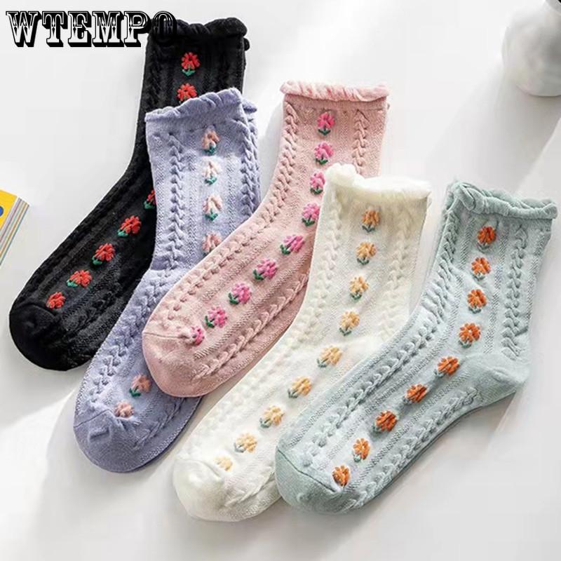 5 шт. женские носки весна-лето Jk носки до середины икры деревянные ушки края японские милые носки для девочек-цветочниц милые хлопковые чулки Лолита