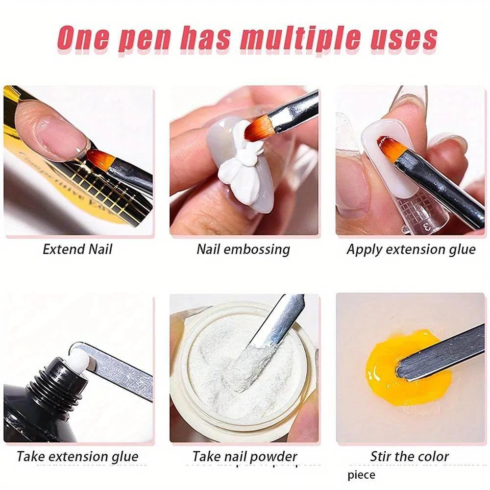 2 в 1 дизайн 2 шт двойная головка Polynail гелевая кисть селектор кисть для ногтей и шпатель из нержавеющей стали гелевый наращивание ногтей гелем инструмент