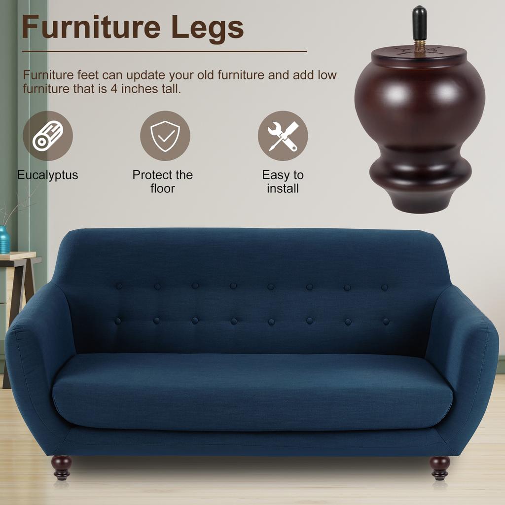 Комплект из 4 ножек для мебели, ножки для дивана из цельного дерева, сменные ножки, высота 4 дюйма, журнальный столик, тумба под телевизор, деревянные ножки