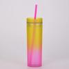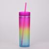 16 унций градиент радуга узкий пластиковый стакан бутылки для воды прямая чашка двухслойная радуга градиент чашка с соломинкой