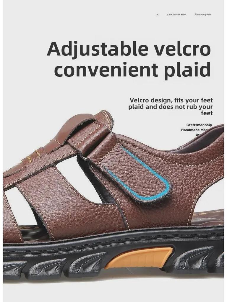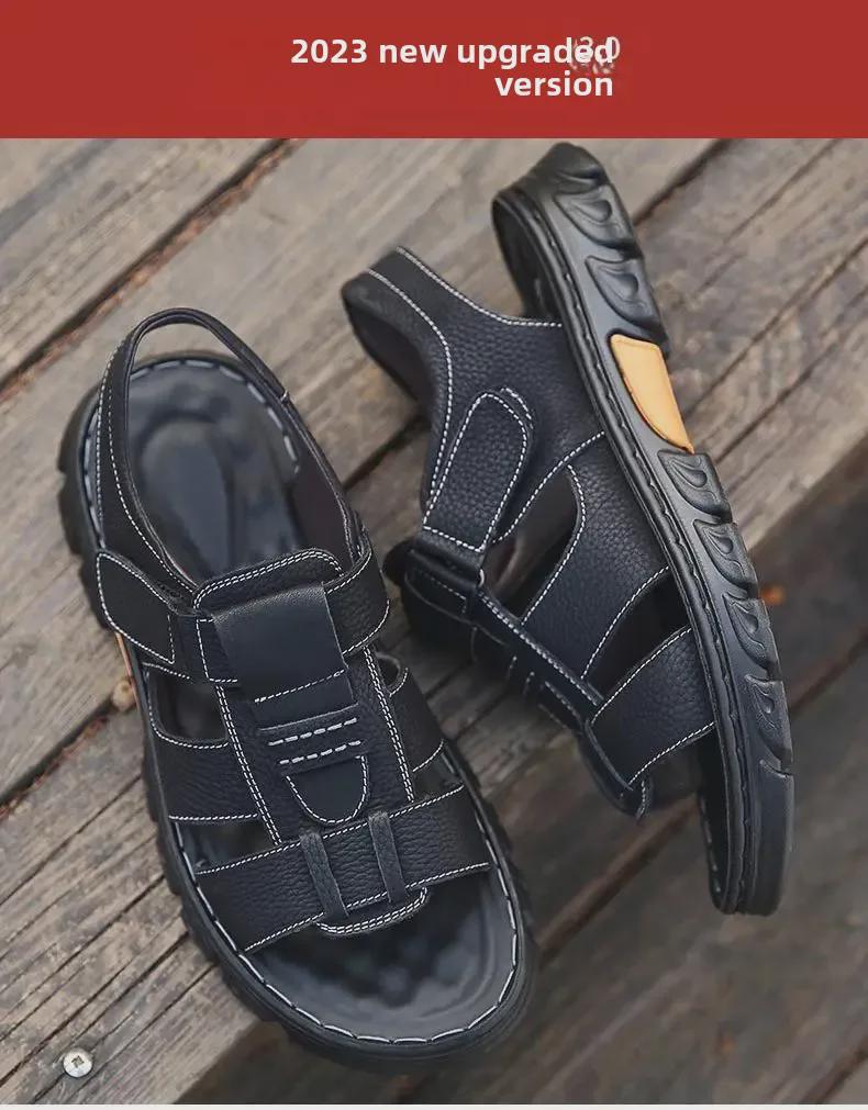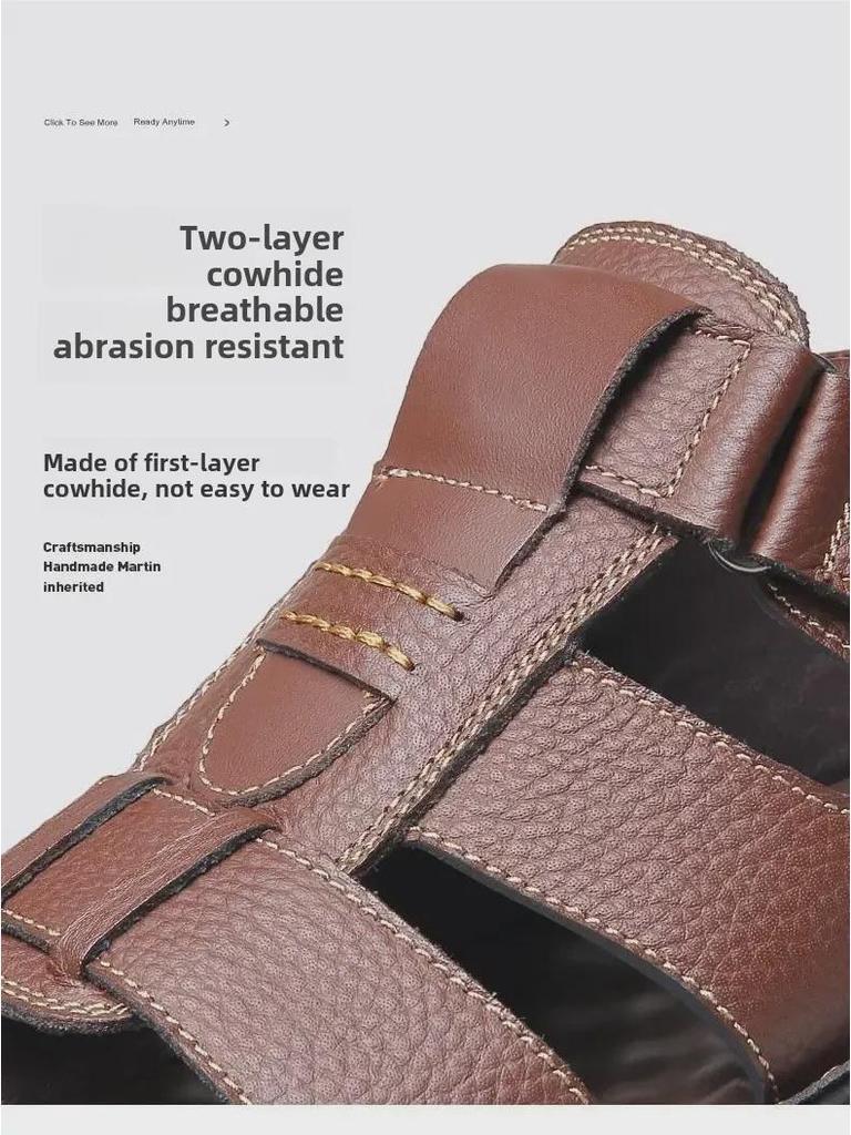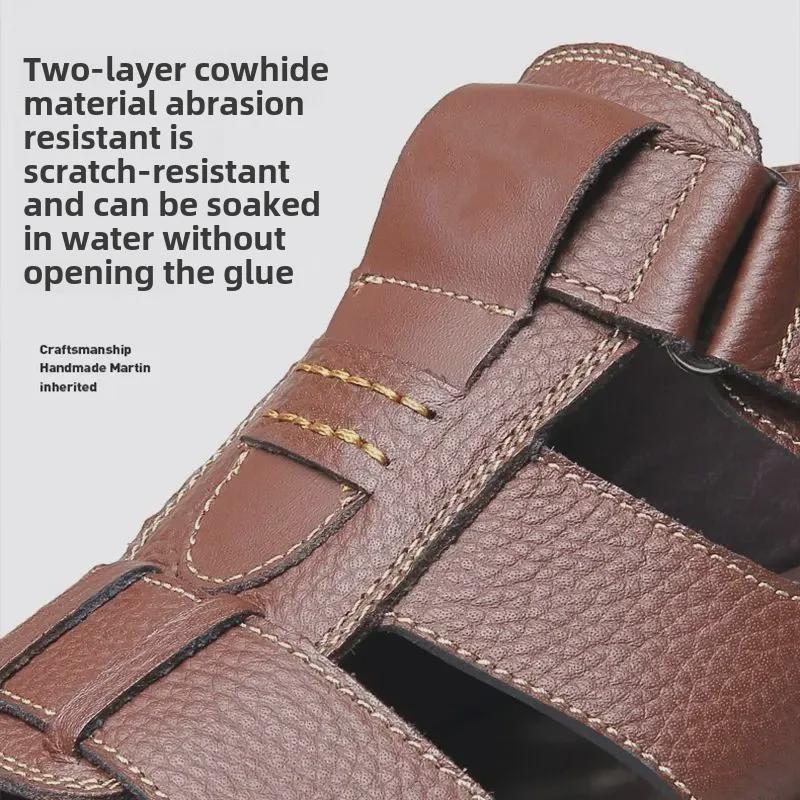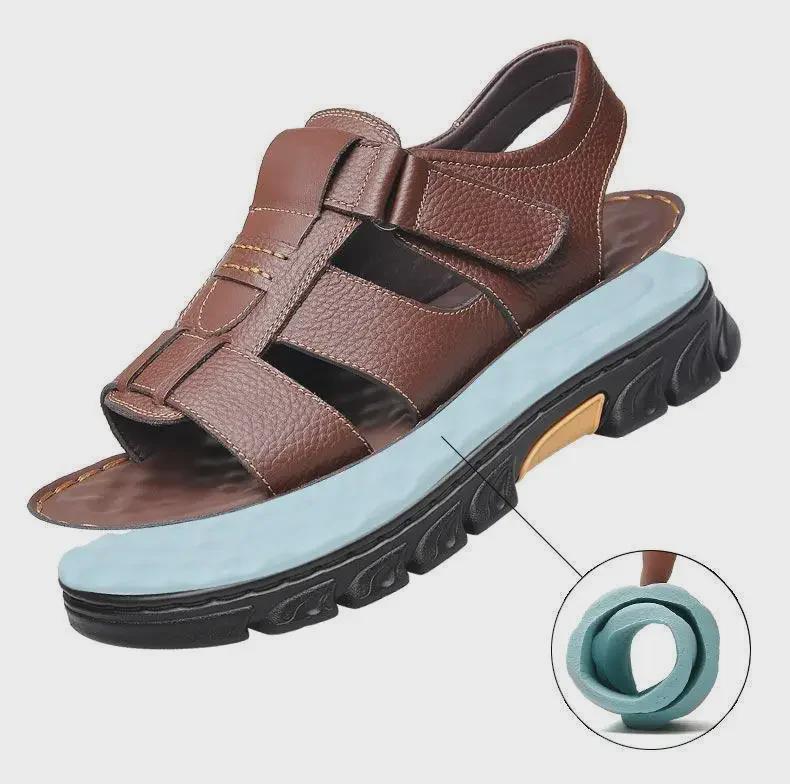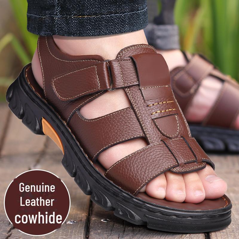 Мужские сандалии из натуральной коровьей кожи с нескользящей прочной подошвой