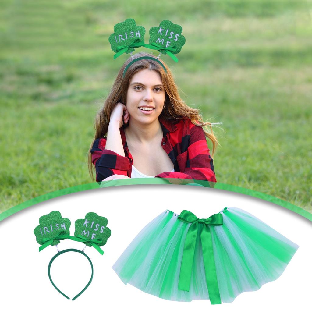 Ирландские вечерние платья для детей, зеленые пачки St.. Повязки для волос с клевером ко Дню Святого Патрика