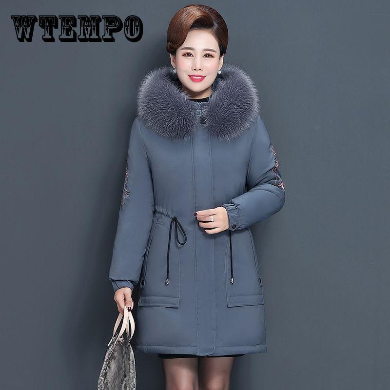 Зимнее пальто для матери в западном стиле, женская куртка среднего возраста и пожилого возраста с длинным большим меховым воротником, благородная толстая пуховая куртка — купить товар онлайн с бесплатной доставкой по всему миру!